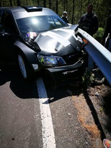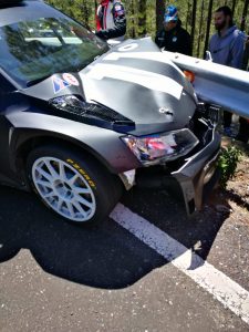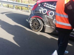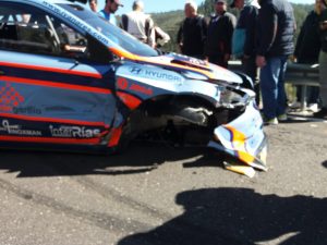 El golpe del campeón de España 2017 fue importante, esperándose que pueda ser reparado y verlo en la rampa de salida de la cita del Campeonato de Europa, España, Canarias y Las Palmas de Rallys.