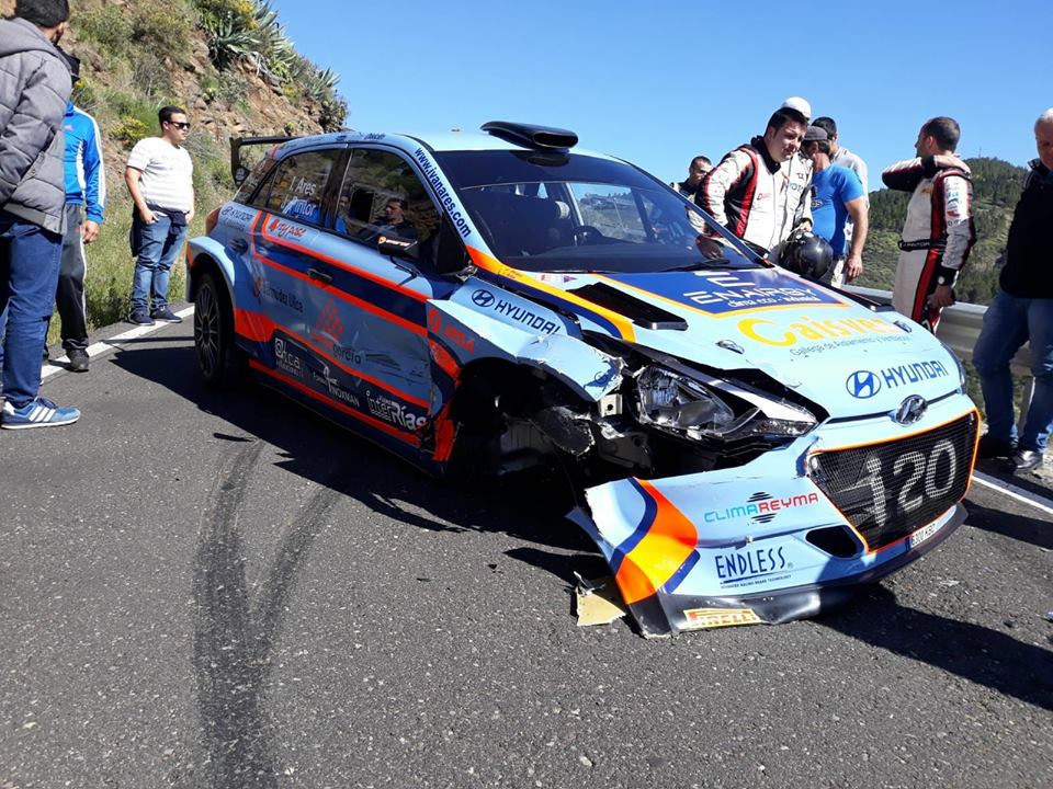 El golpe del campeón de España 2017 fue importante, esperándose que pueda ser reparado y verlo en la rampa de salida de la cita del Campeonato de Europa, España, Canarias y Las Palmas de Rallys.