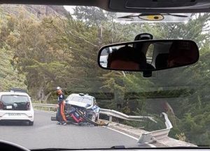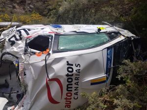 Malas noticias para dos de los equipos participantes en la 42 edición Rally Islas Canarias. Siempre es malo tener que abandonar, pero tiene una carga mayor cuando lo tienes que hacer por una salida de carretera que ocasiona importantes desperfectos a tu monturas.