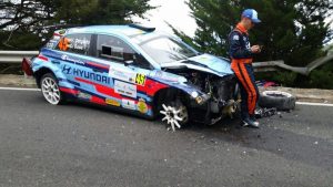 Con la suerte de no tener que lamentar daños físicos, que siempre es lo que más ocupa y preocupa, el tinerfeño Víctor Delgado y el grancanario Dani Sosa sufrían una salida de carretera que dejaba su Hyundai i20 R5 fuera de combate en el cuarto tramo del día. Uno antes, en el último del primer bucle, Tino Guerra y Miguel Ángel González tenían una fuerte salida de pista que dejó en muy malas condiciones el Peugeot 208 VTI R2. Lo mejor, que no hay que lamentar daños personales.