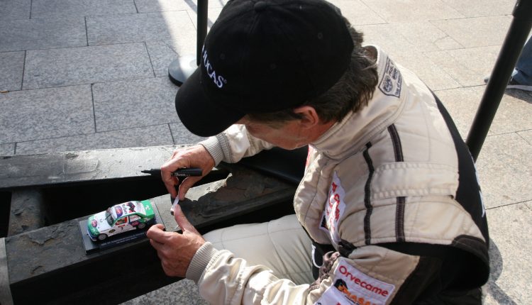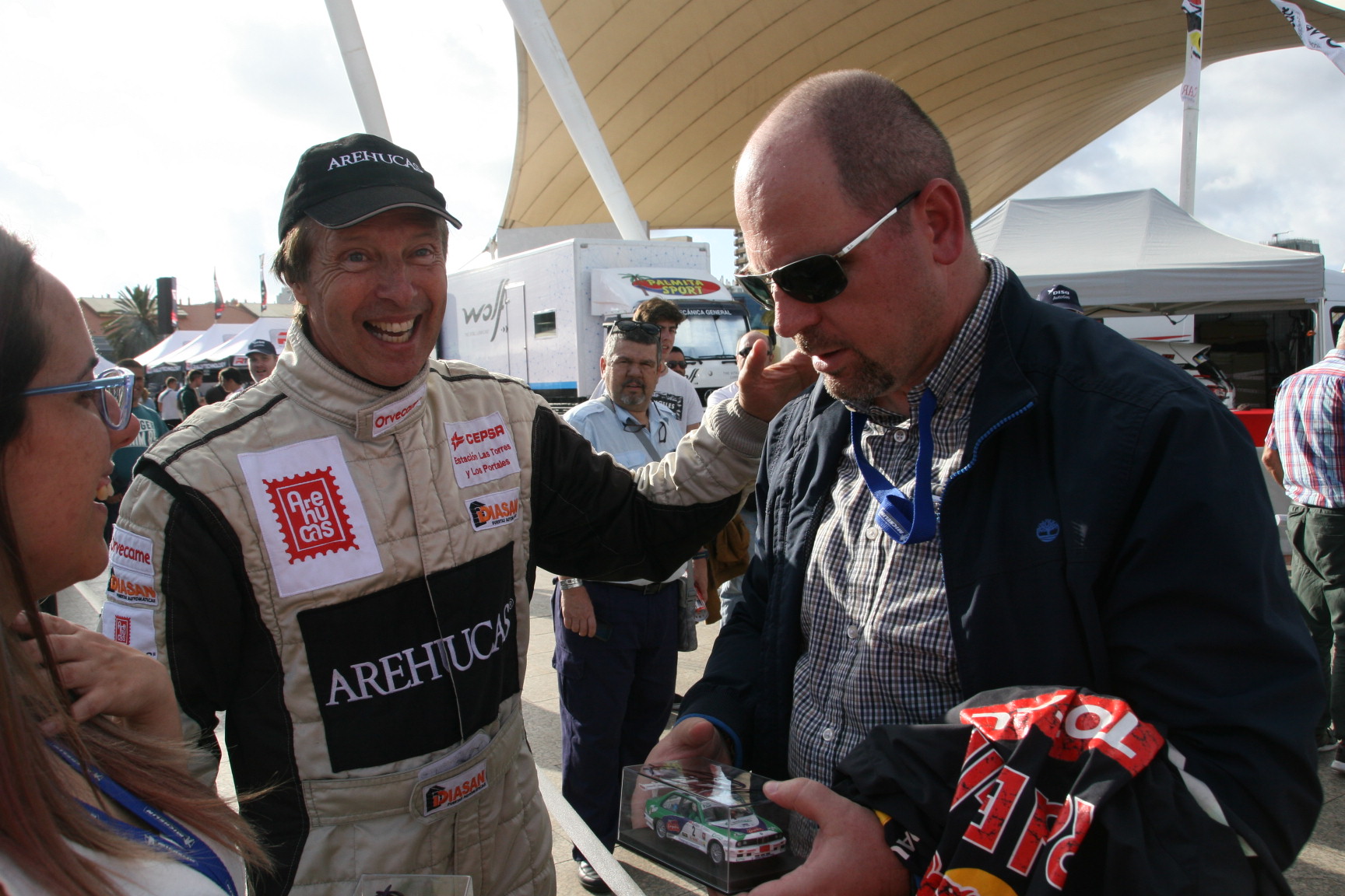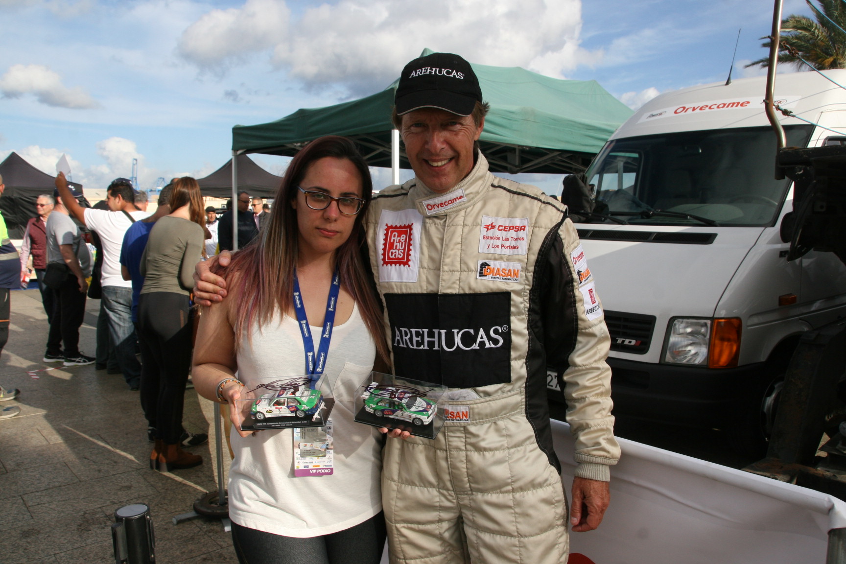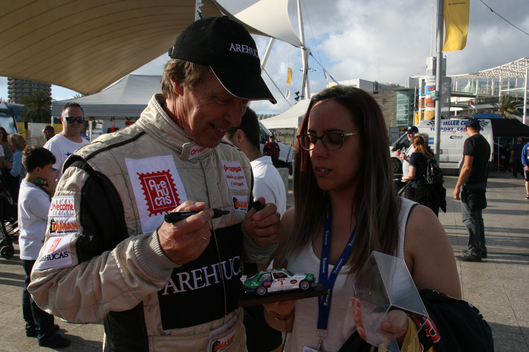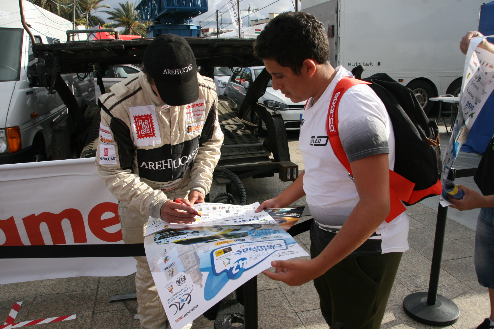 La cámara de @Rafaleonortega fue testigo de las innumerables peticiones de fotografías de padres, madres, novios, novias, hijos y nietos, además de peticiones de firmas de maquetas de algunas de sus antiguas monturas, con el carismático piloto grancanario. Se dice y no se cree, pero aquí lo demostramos con esta galería de fotos. Y que conste que no era una firma de autógrafos o un acto promocional, para nada, simplemente eran aficionados que pedían una y otra vez hacerse un foto con el primer canario campeón de España de Rallys de Asfalto. Eso fue el jueves por la tarde, pero este viernes será igual, como el sábado, el domingo, el lunes…