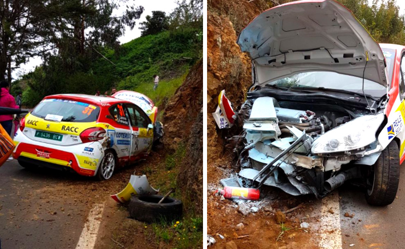 El Peugeot 208 de Efrén Llarena y Sara Fernández sufrió un accidente en el TC 10 de San Mateo del Rally Islas Canarias. El tramo tuvo que ser neutralizado debido a lo aparatoso del incidente y los equipos que salían por detrás de ellos no pudieron completar el tramo con normalidad.
