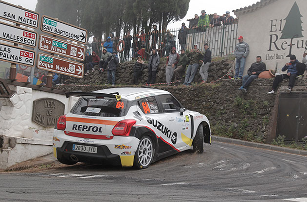 Javier Pardo y Adrian Pérez, en su estreno con el nuevo Suzuki Swift Sport R+, se tomaron la prueba con cautela, buscando conocer las reacciones de su nueva montura, pese a ello rodaron en la segunda plaza de los N5 hasta el abandono de Vinyes. A partir de ese momento, pese a sufrir también un toque en el tramo de Gáldar y problemas de frenos, el objetivo pasaba a ser el de finalizar la prueba y sumar puntos para el equipo. Javier y Adrián finalizaban en la novena plaza del Campeonato de España y primeros clasificados entre los Junior, resultado que les permite mantenerse al frente de la clasificación Junior y N5 así como en la tercera plaza del Campeonato de España.