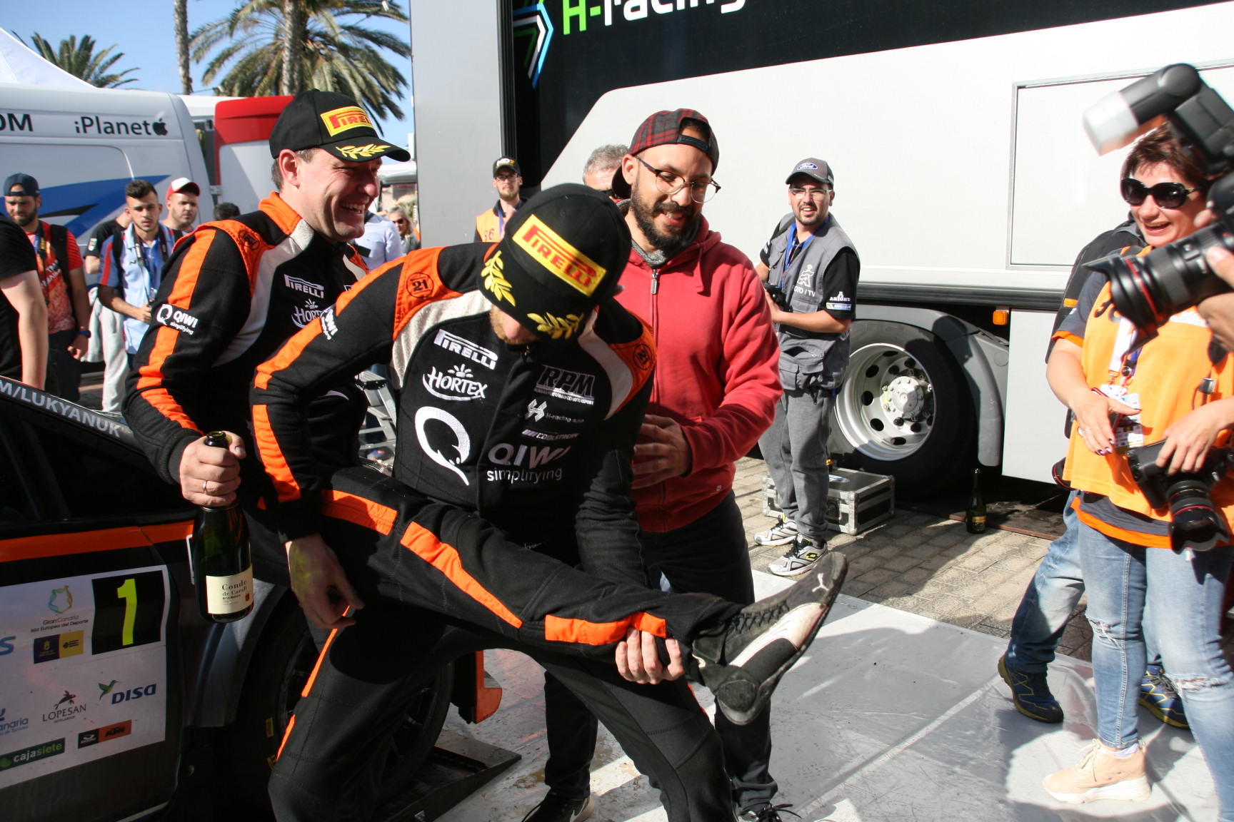 Te mostramos una galería de fotos del final del 42 Rally Islas Canarias, con la alegría de los mejores equipos clasificados en la prueba puntuable para el Campeonato de Europa, España, Canarias y Las Palmas de Rallys de Asfalto 2018, y también el demonte de las asistencias y el Parque Cerrado.