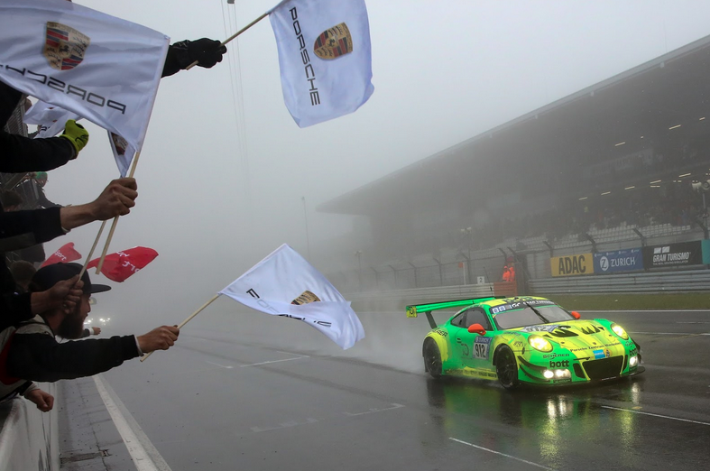 Después de una apasionante fase final, el Porsche 911 GT3 R con el dorsal 912 ha ganado las 24 Horas de Nürburgring. Mientras caía una lluvia torrencial, el nueveonce del equipo Manthey-Racing se puso líder a falta de 70 minutos para el final de la carrera y cruzó la bandera de cuadros en esa posición. Esta es la primera victoria de Porsche en el legendario trazado de resistencia desde 2011 y supone el duodécimo triunfo de la marca aquí.