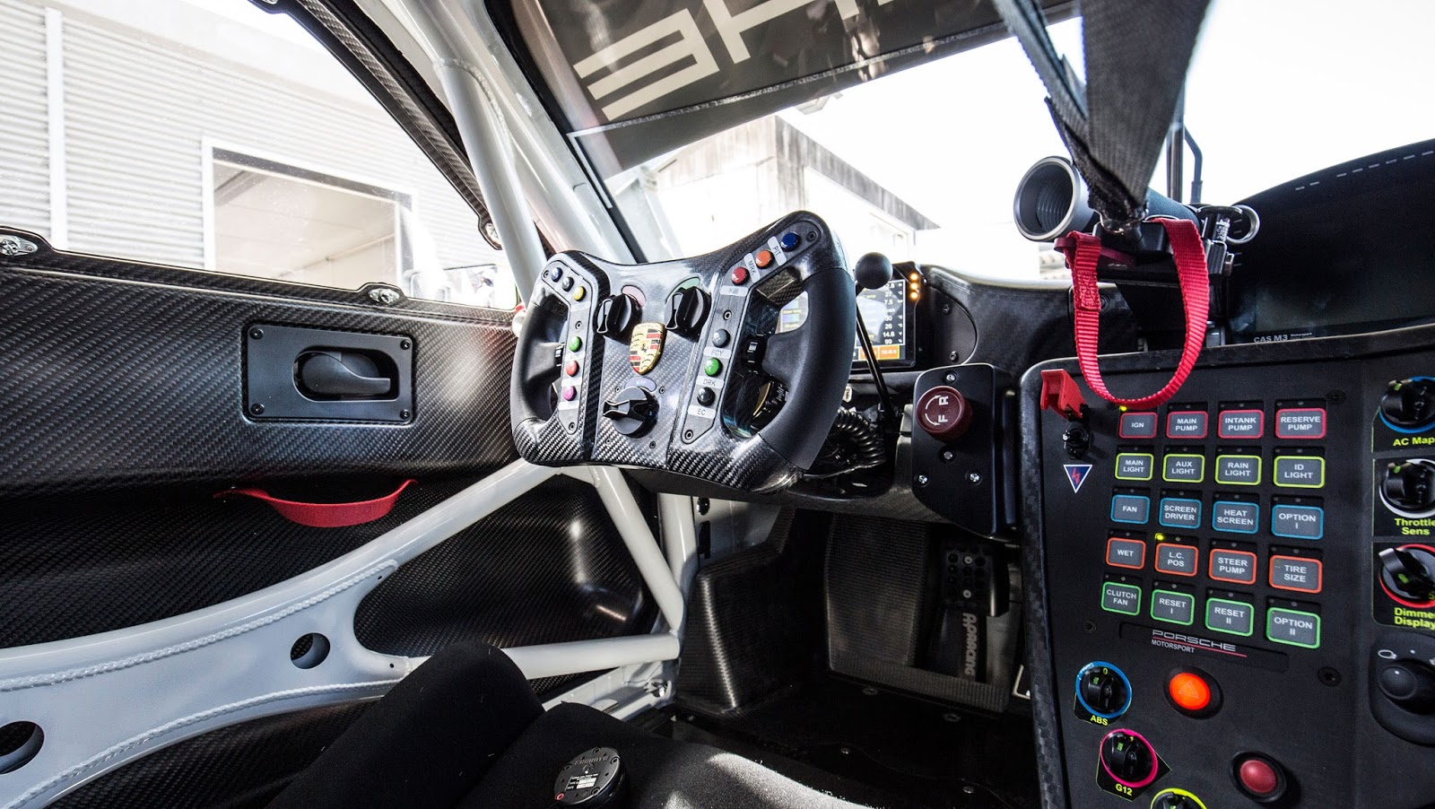 Todos los mandos de control han sido perfectamente alineados de acuerdo a las necesidades del piloto. Por primera vez, el 911 GT3 R lleva aire acondicionado. Con eso se asegura la refrigeración idónea del interior y, gracias a la conexión directa con el asiento y el casco del piloto, éste consigue mantenerse fresco y eso le ayuda en la concentración y en conseguir que el rendimiento sea constante durante la carrera.