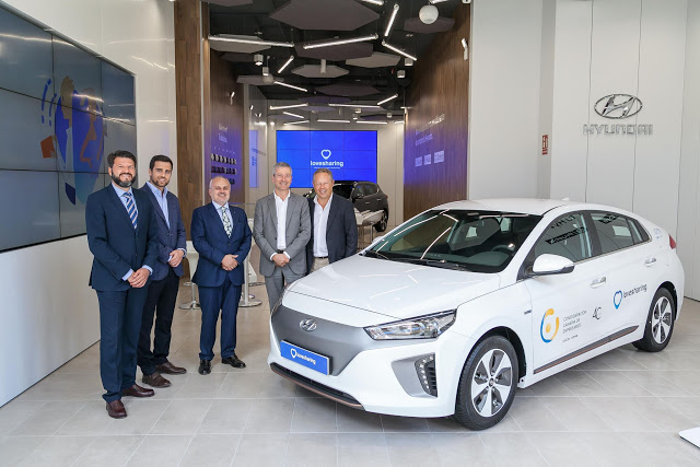 El acto de la firma del acuerdo tuvo lugar este jueves 17 de mayo en el City Store de Hyundai Canarias con la presencia de Agustín Manrique de Lara, Presidente de la Confederación Canaria de Empresarios, José Cristóbal García, Secretario General de la Confederación Canaria de Empresarios, Oliver Alonso, CEO Domingo Alonso Group, Roberto Dávila, Director de Movilidad de Domingo Alonso Group y Gonzalo López, COO de Lovesharing.