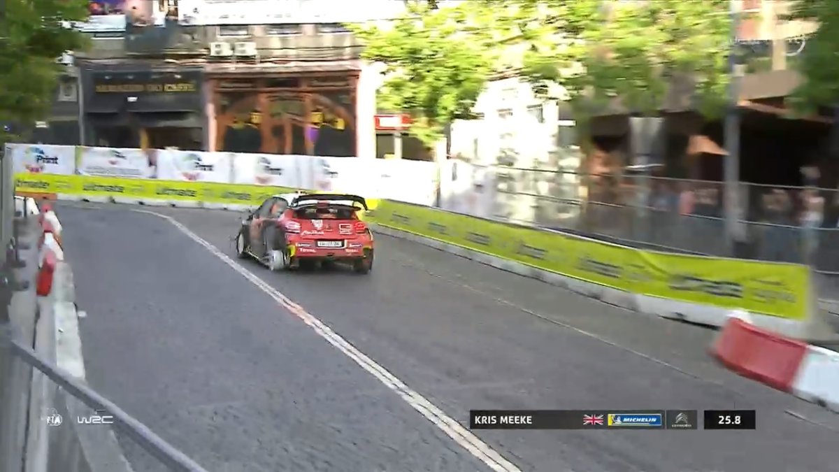 Puede parecer una imagen del juego del Colin Mcrae de cualquier de nosotros al terminar una partida. Pero no, es real, totalmente real. Se trata del piloto norirlandés Kris Meeke con su Citroën C3 WRC totalmente destrozado en la Súper Especial del Vodafone Rally de Portugal.