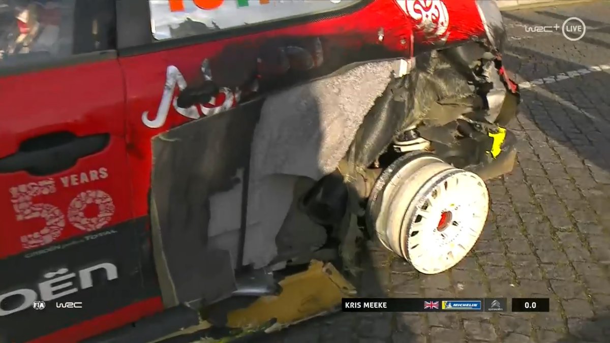 Con el coche a tres ruedas pudo terminar, a duras penas, el tramo, aunque perdiera muchos segundos, algo secundario, visto lo visto.