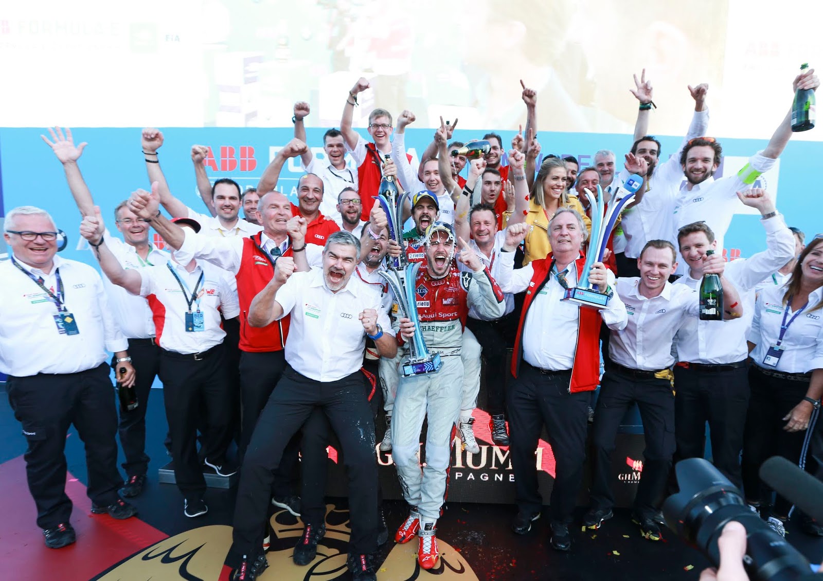 “Fue una carrera fantástica para nosotros”, declaró el Director de Audi Motorsport, Dieter Gass. “Es el primer doblete para Audi desde nuestra entrada de forma oficial en la Fórmula E y el primero para el equipo, ¡además lo hemos conseguido en casa! Daniel logró la máxima puntuación posible y Lucas completó un día perfecto para nosotros. Felicito a todos los que han trabajado tan duro para conseguirlo. No es habitual ver a nadie con una ventaja tan grande en una carrera de Fórmula E”.