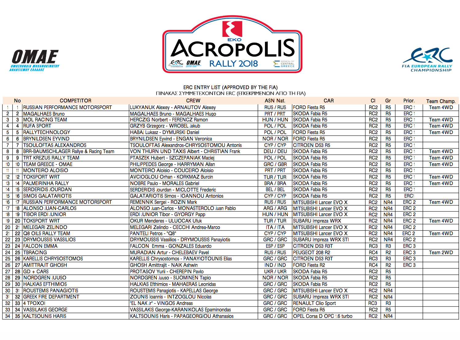 La tercera cita del Campeonato de Europa de Rallys se correrá en Grecia. Más concretamente en el mítico Rally Acrópolis, que cerró su lista de inscritos con un total de 34 equipos participantes, de los que 19 serán monturas R5.