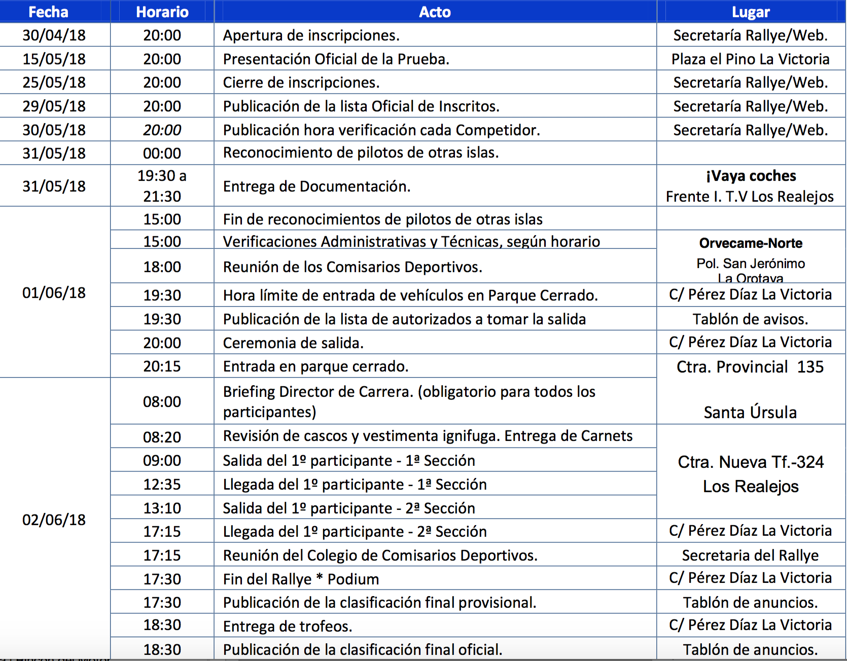 En total se disputarán cuatro especiales por las que se pasarán en dos ocasiones: Santa Úrsula (4,8 kms); El Tanque-Garachico-Ciudad del Drago (13,040 kms); Icod-La Guancha-Los Realejos (14,760 kms) y Realejos-Medianías-Orotava (9,530 kms). Serán dos bulces de cuatro tramos por la mañana y lo mismo por la tarde.