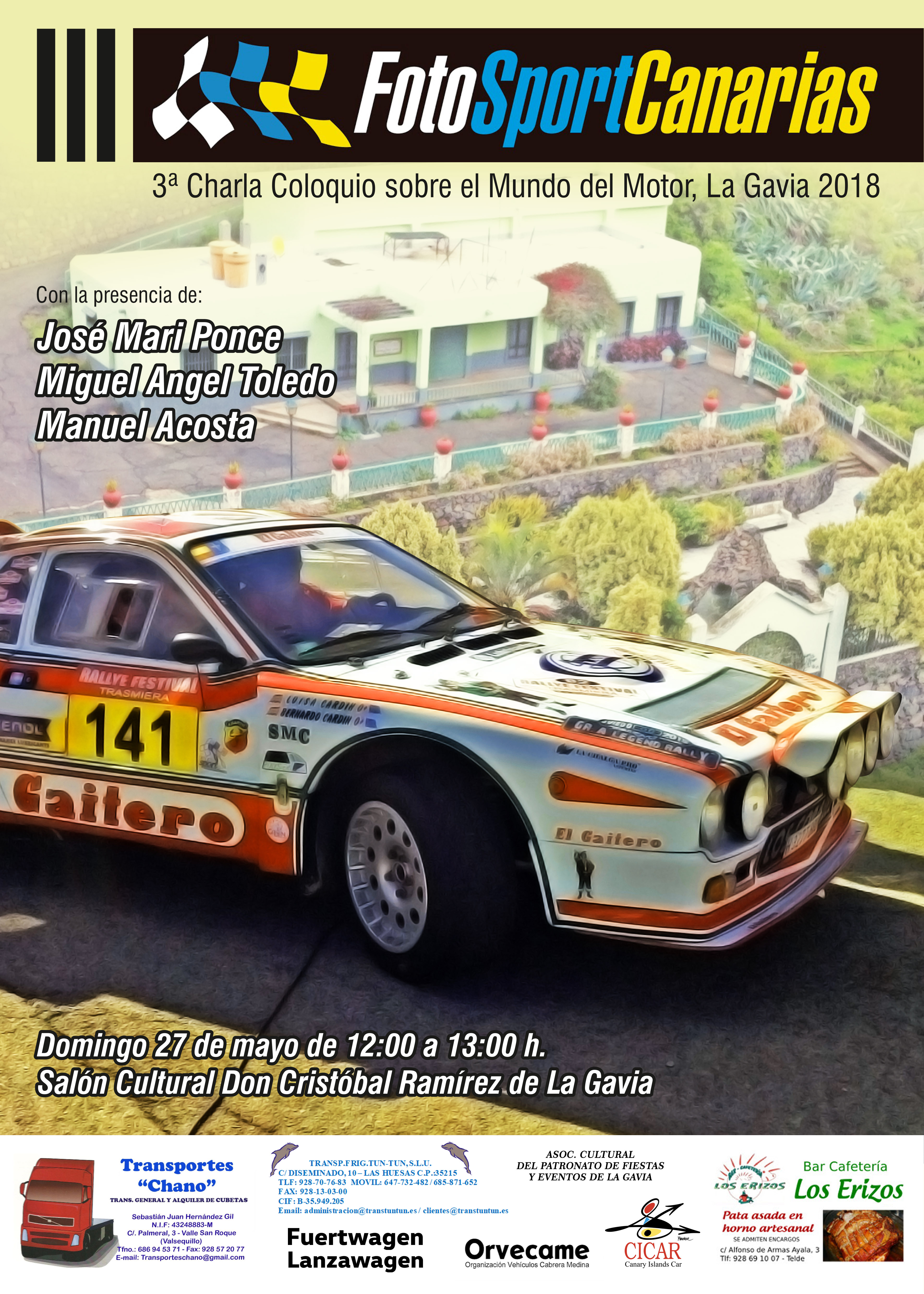 La III FSC Charla Coloquio sobre el Mundo del Motor La Gavia se desarrollará e irá dirigida para todos los fieles e incondicionales aficionados y amantes del deporte del Motor que quieran compartir vivencias, experiencias y anécdotas del Mundo de los Rallys, y desde el comienzo del Automovilismo deportivo en Gran Canaria allá por el año 1954 interviniendo, entre otras personas, José Mari Ponce, Miguel Ángel Toledo y Manuel Acosta. Al final habrá un refrigerio para los asistentes.