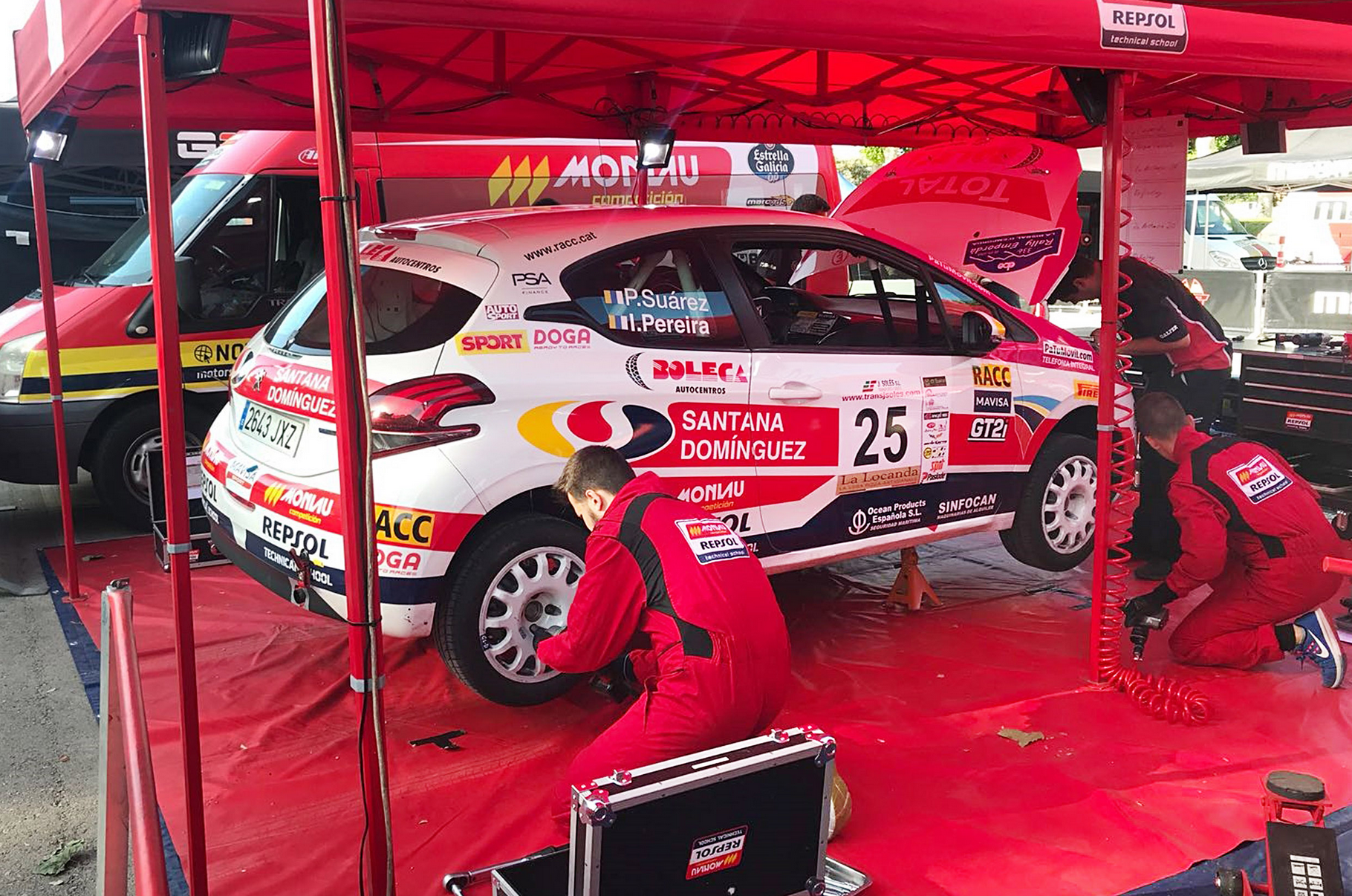 La segunda sección prometía emociones fuertes, a tenor de las mínimas diferencias entre los seis primeros clasificados, todos ellos en un pañuelo. Ante este panorama, resultaba clave gestionar bien el tiempo, tanto en los tramos como en el parque de asistencia, donde Monlau Repsol realizó una labor encomiable. Los tres profesores y los cuatro estudiantes de primer curso de Mecánica de Competición de Automovilismo demostraron un gran nivel que les permitió dejar el Peugeot 208 1.2 PureTech VR en perfectas condiciones después de cada una de sus intervenciones.