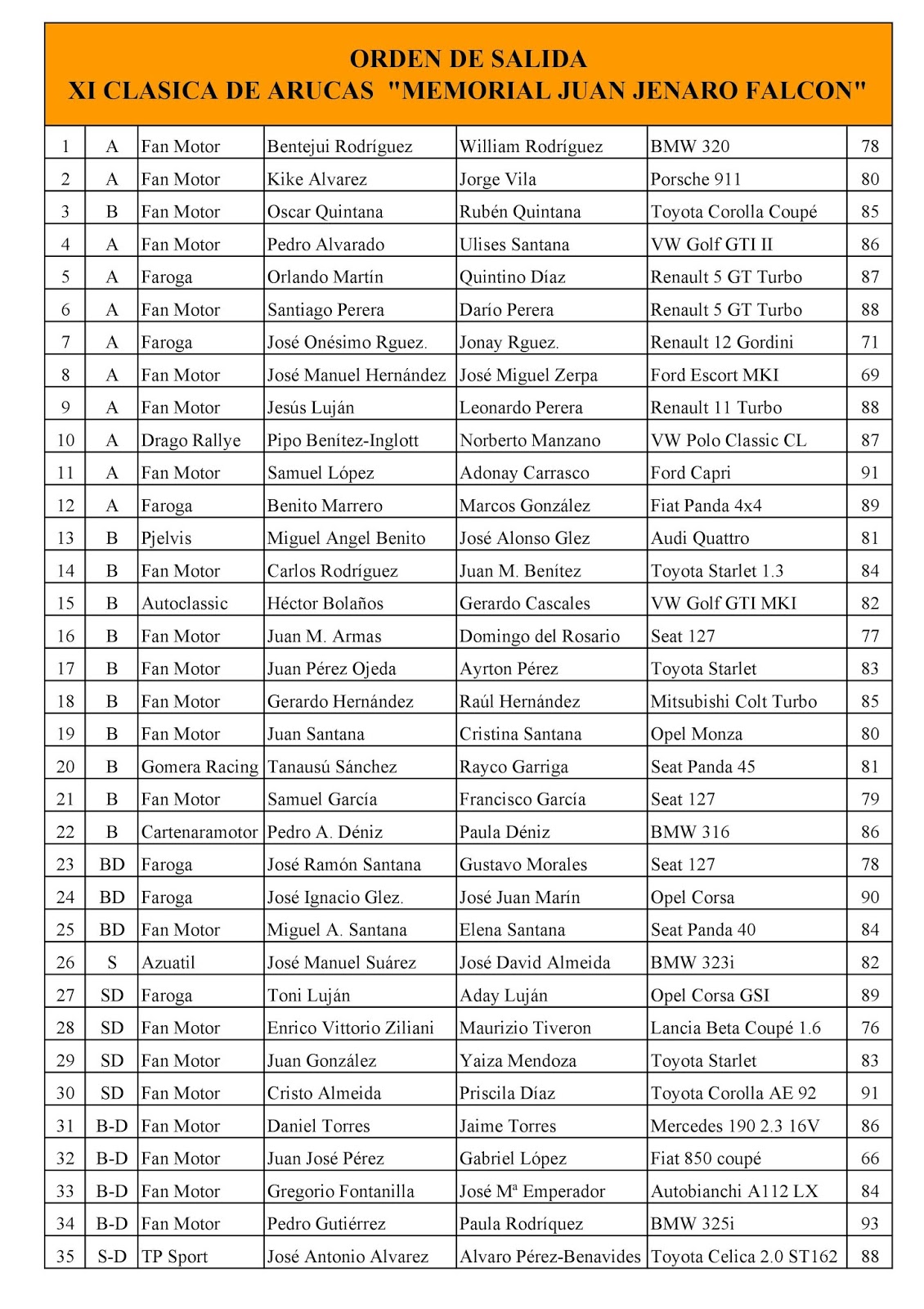 La frecuencia entre los vehículos será de 30 seg. y el cronometraje se realizará con el habitual sistema de GPS. Todo el seguimiento de tiempos y clasificaciones lo podrán seguir en www.clasicacanaria.com (Tiempos Online)
