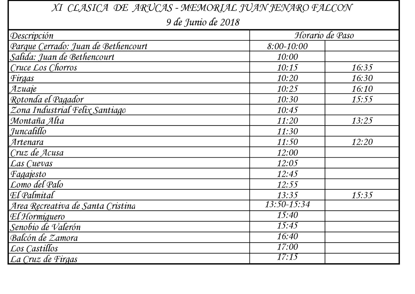 – Nombre: XI Clásica de Arucas.