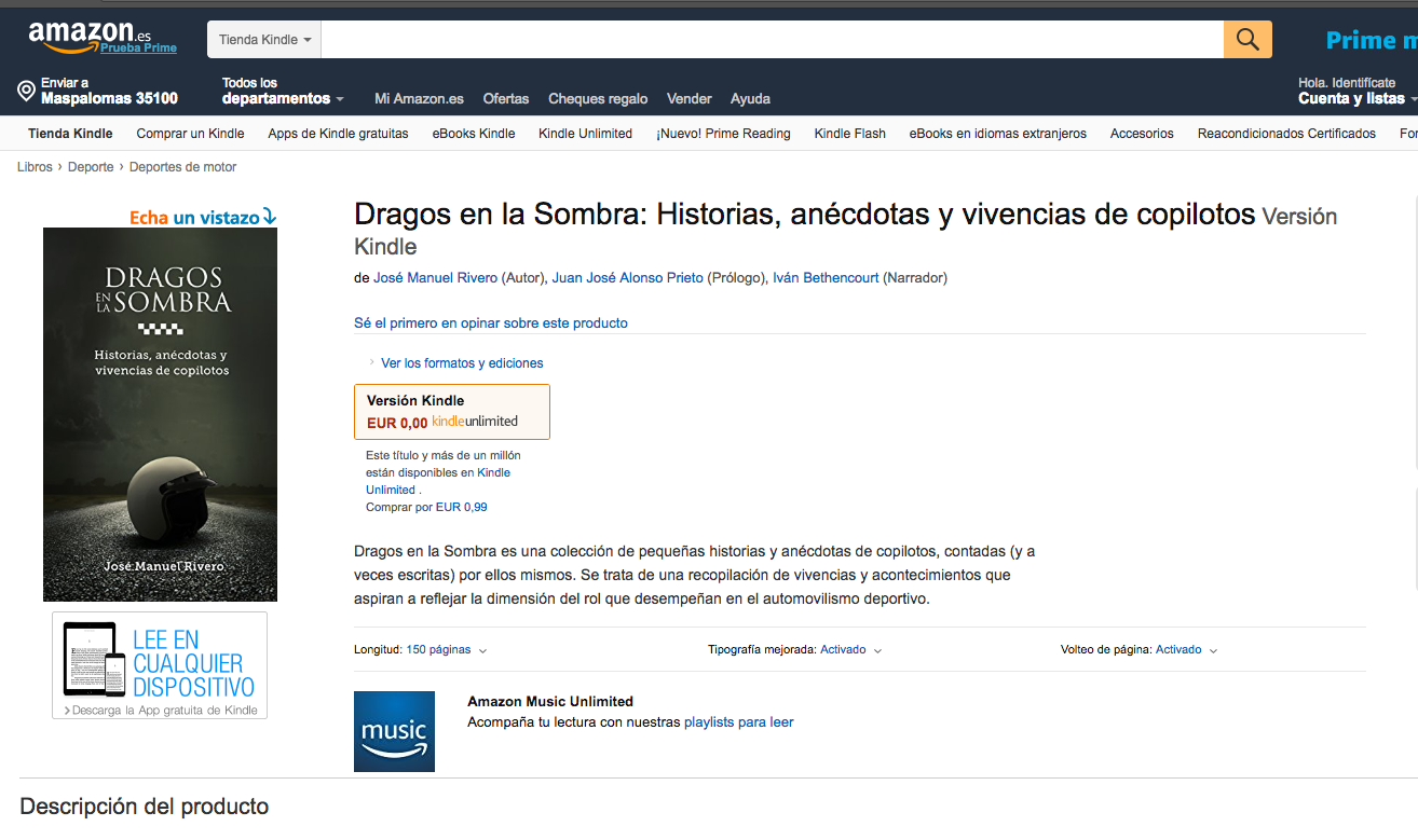 Amazon es la mayor tienda on line del planeta, una circunstancia que garantizará una distribución global para este trabajo. Según J. Manuel Rivero, “el automovilismo canario ha tenido en determinadas épocas una gran proyección internacional. Dragos en la Sombra es un pequeño reconocimiento al trabajo silencioso de los copilotos, y distribuirlo a través de Amazon contribuye a reafirmar la vocación internacional a la que debe seguir aspirando el automovilismo canario”.