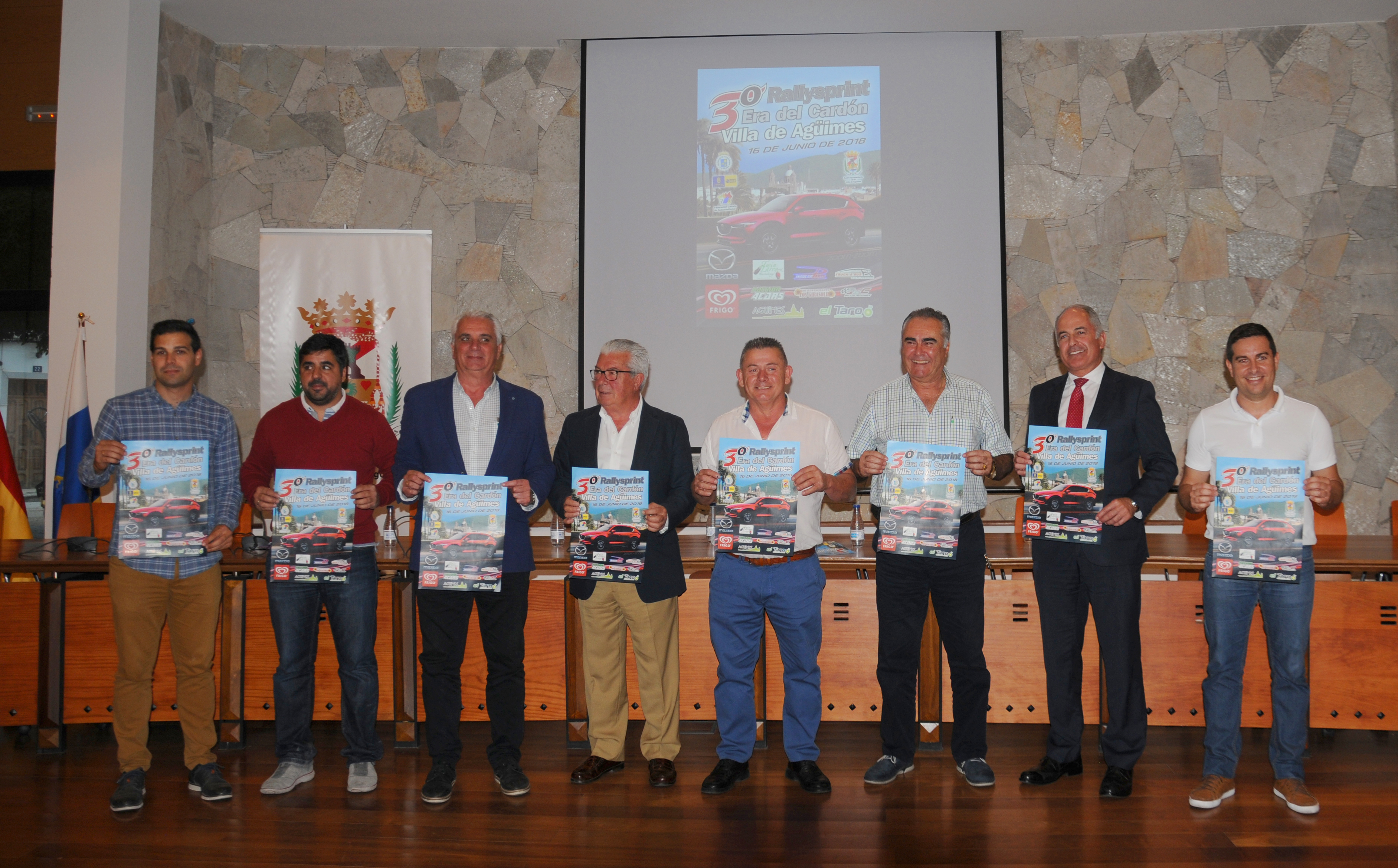 En la mesa amenizando el acto se encontraban, Acaymo Reyes (FALP) y José Víctor Rodríguez, Presidente de la Federación de Automovilismo de Las Palmas, Carlos Gaztañaga, Presidente de la Federación Canaria de Automovilismo, Vicente Arencibia organizador del rallysprint, Francisco Ortiz de la marca FRIGO, Agustín Rodríguez, jefe de ventas de MAZDA Canarias y patrocinador que nuevamente se suma a la prueba y David Navarro, Concejal de Deportes de la Villa de Agüimes.