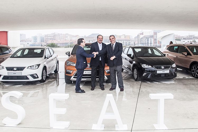 Ramón Paredes, vicepresidente de Relaciones Gubernamentales e Institucionales de SEAT, ha firmado la entrega de los diez vehículos (Arona, Ateca, Ibiza y Mii), en un acto junto con el consejero de Educación y Cultura del Principado de Asturias, Genaro Alonso.