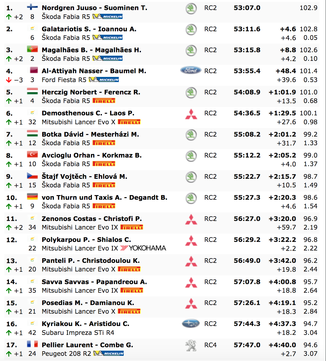 El piloto chipriota Simos Galatariotis está ahora segundo a solo 4,6 segundos detrás de Nordgren. Bruno Magalhães heredó el tercer lugar después de los problemas de Al-Attiyah, estando a solo 8.8 por detrás de Nordgren. Al-Attiyah ahora está a 48.4 segundos de Nordgren