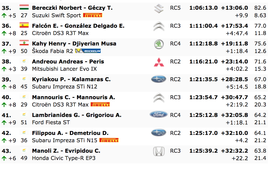 El local Alexandros Tsouloftas había realizado buenos cronos para tomar un lugar provisional en el podio, pero se detuvo temprano el sábado por culpa de problemas mecánicos. Norbert Herczig completó su ausencia, pero está a 1:01.9 por detrás de Nordgren.