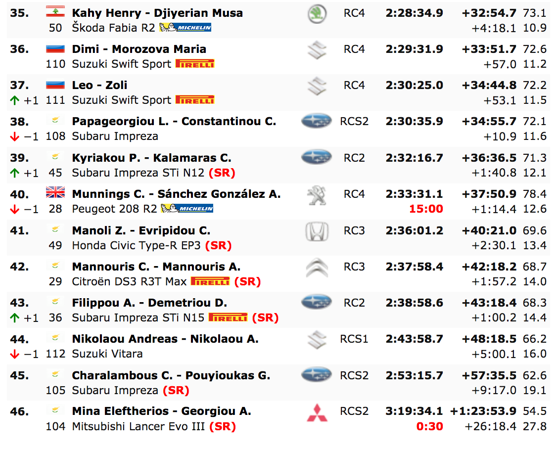 Petros Panteli selló el noveno lugar en la general y la victoria en el ERC2 por delante de un Alexandros Tsouloftas, que cerró las diez primera plazas. Fue un día asombroso de Tsouloftas, yendo más rápido en la segunda etapa para obtener siete puntos de bonificación y también ganar el premio Golden Stage.