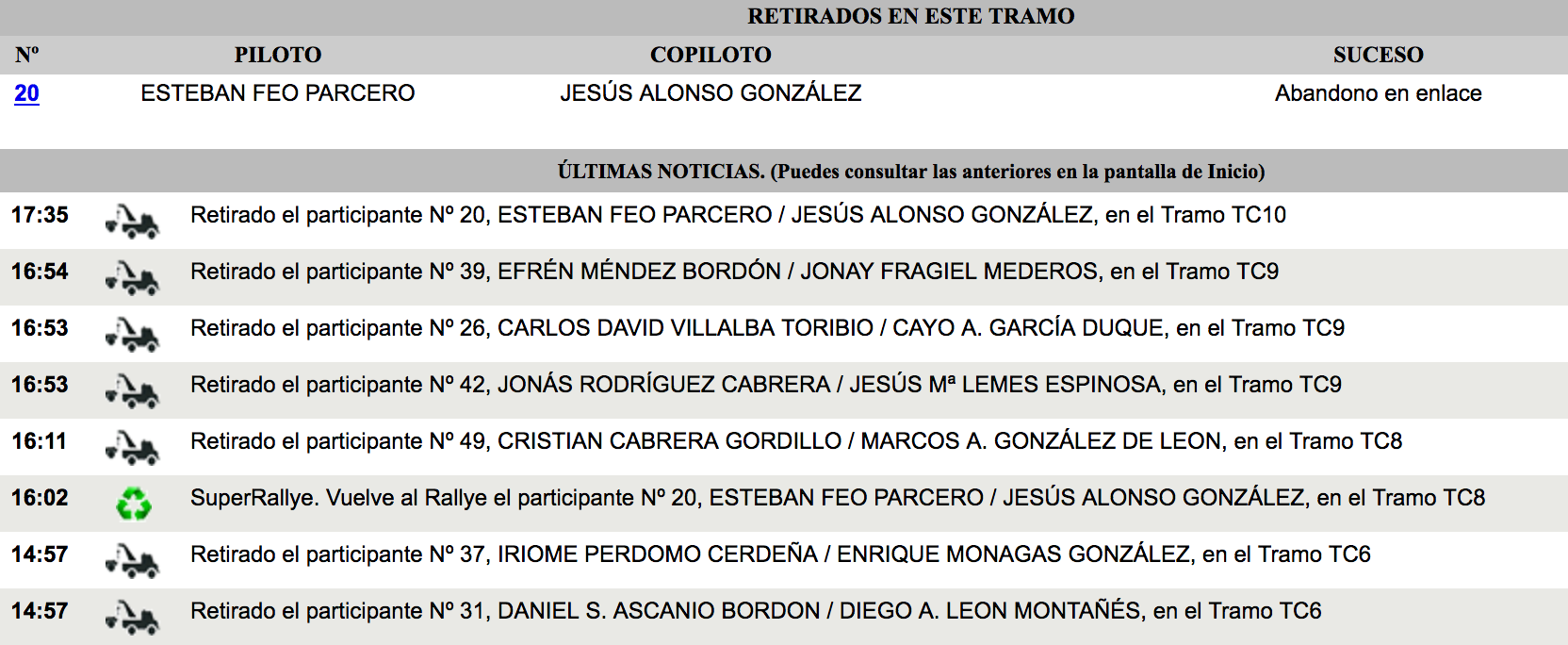 Toda la información de los tiempos en http://www.vmrm.net/rallie/2018/20prosario/online/tramos.php?on=1&idi=ES