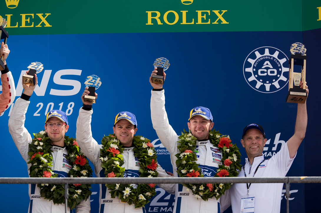 Aunque no se consiguió la victoria, Mark Rushbrook, director global de Ford Performance Motorsports, quedó impresionado con el esfuerzo del equipo en estas 24 horas: «Quieres ganar todas las carreras en las que compites, pero venir aquí, para la carrera más dura del mundo, y presenciar el esfuerzo que ha hecho Ford Chip Ganassi Racing ha sido genial», dijo Rushbrook. «Lucharon duro, día y noche, terminaron terceros y subieron al podio por tercer año consecutivo y también por tercer año consecutivo todos nuestros Ford GT terminaron. Desafortunadamente, la mayor parte de los GTE Pro quedaron atrapados en boxes por ese temprano coche de seguridad, eso cambió la dinámica de la carrera. Pero tenemos que estar orgullosos de lo que ha conseguido este equipo».