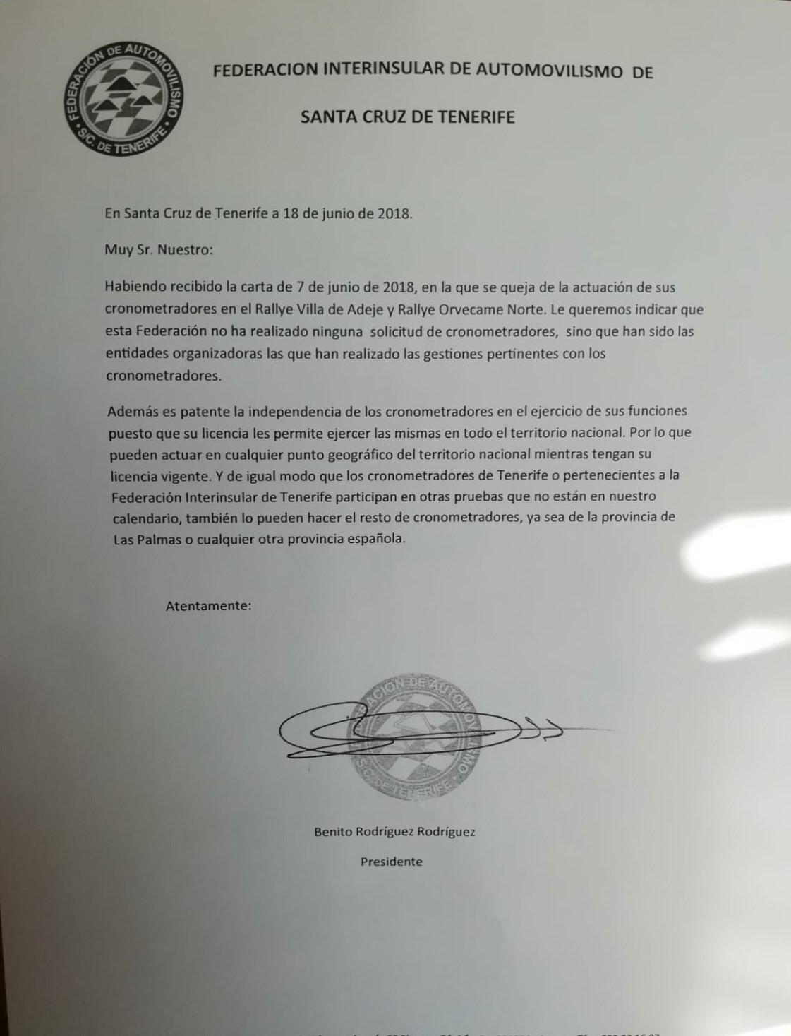 Además de un desafortunado escrito enviado por el Secretario de la FALP, don David Rivero Suárez, al Presidente de la Federación Interinsular de Automovilismo de Santa Cruz de Tenerife (FIASCT), don Benito Rodríguez Rodríguez, pidiéndole explicaciones por la actuación de algunos cronometradores, que residen en Gran Canaria, en los citados rallyes celebrados en Tenerife; ahora han dado un desafortunado paso más citando a los citados cronometradores a una reunión en la sede de la FALP con la finalidad de “leerles la cartilla”.