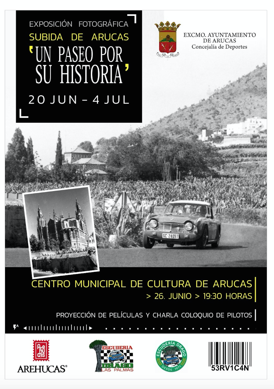Aprovechando la Exposición fotográfica “Subida a Arucas – Un Paseo por su Historia”, que estará desde el 20 de junio al 4 de julio en la Biblioteca Municipal de Arucas, la Escudería Drago realizará una Charla con pilotos y personas directamente vinculadas con la Subida, además de proyecciones de películas de los años 50 y 60.