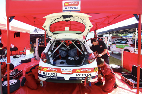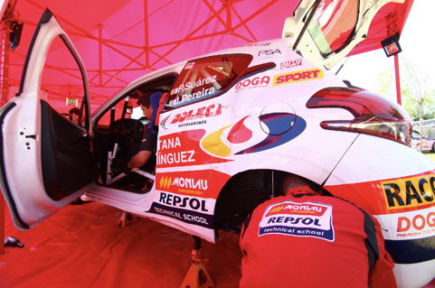 Lejos de arrojar la toalla, los estudiantes y profesores de Monlau Repsol se marcaron el enorme reto de reparar el Peugeot 208 a tiempo para poder tomar la salida al día siguiente. Dicho y hecho, el equipo liderado por el Team Manager Kike López, coordinador del área de estudios de automovilismo de la escuela barcelonesa, se puso manos a la obra.