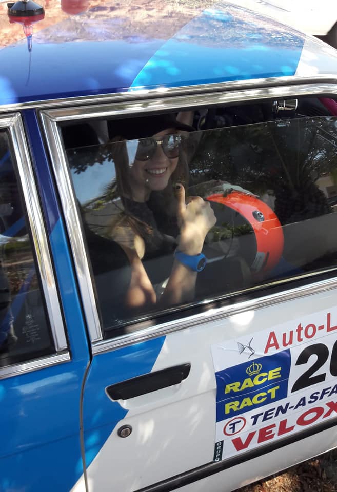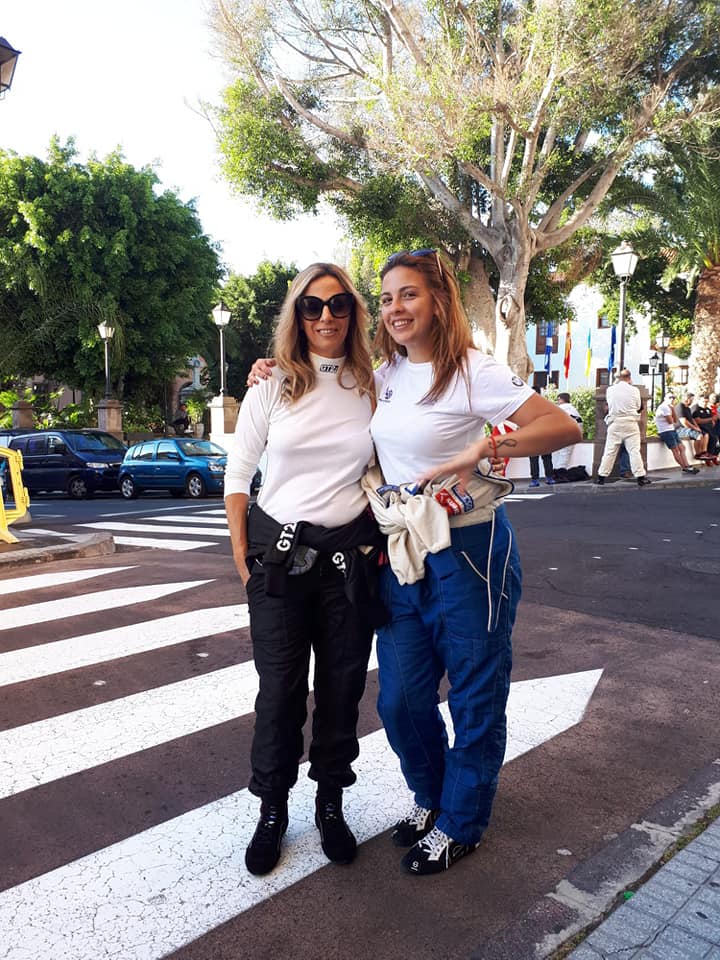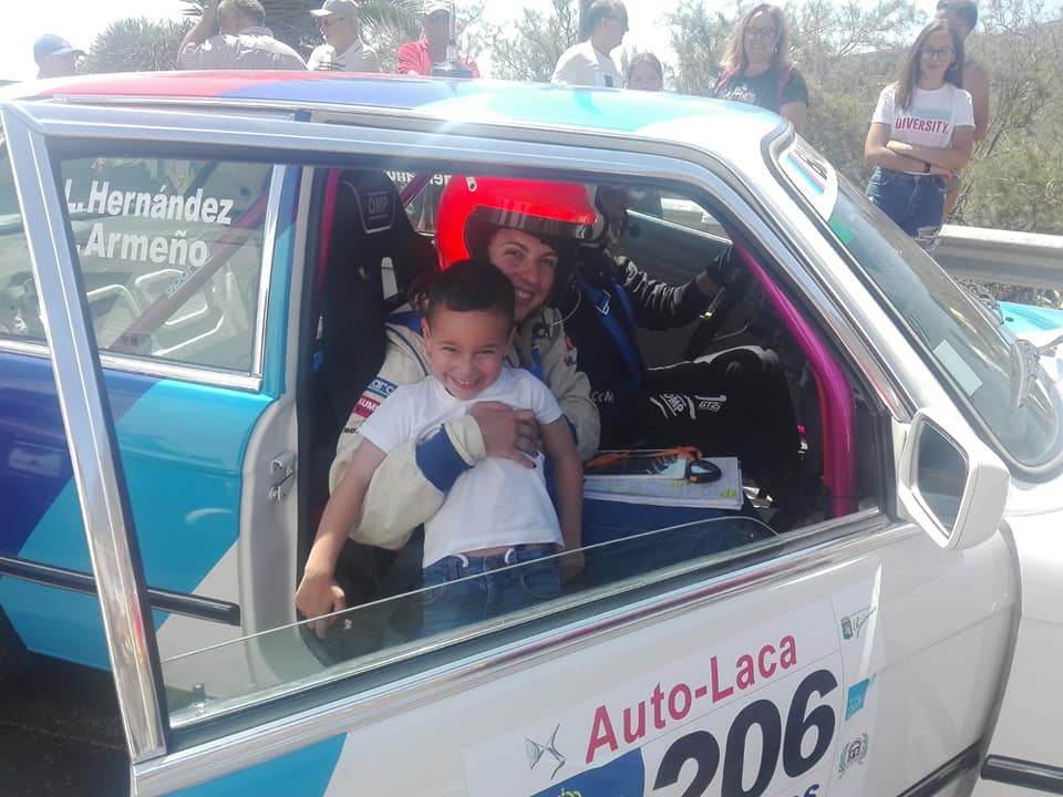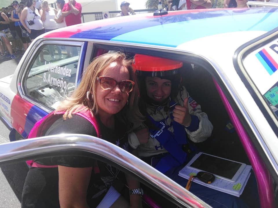 La joven deportista tinerfeña Lucía Hernández participó por primera vez en la Subida a El Mirador de Güímar dentro del apartado de Regularidad Sport y junto a Sandra Armeño Mora en su BMW E21. Un equipo femenino vivió un día diferente de carreras y muy especial para la copiloto por su debut en la cita. Su cara de felicidad lo dice todo.