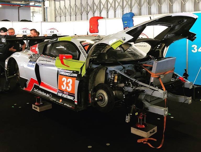 Sin embargo, una salida de pista de Kuzdas en estos entrenamientos libres provocó importantes daños al chasis, circunstancia que no se descubrió hasta la madrugada del sábado, a falta de pocas horas para el inicio de la carrera. Ello no impidió que Tutumlu fuese el Audi más rápido en entrenamientos, séptimo absoluto con un 1:45.209. “Siegfried perdió el control del coche al salir de boxes con neumáticos fríos. Al pasar por encima del piano, rompió el fondo plano y una llanta. Cambiamos todo para la clasificación y realmente apenas noté algo menos de grip. De hecho, fui el mejor Audi. En los entrenamientos libres nocturnos incluso mejoramos los reglajes y me quedé a dos décimas de mi tiempo con neumático usado. Desgraciadamente los ingenieros de Audi descubrieron por la noche que el chasis de Audi estaba roto y no era reparable para la carrera”, comentó Tutumlu, El español añadía explicando que “al menos pude ser el piloto más rápido de Audi, por delante de Kaffer y Haase. La labor del nuevo ingeniero español Miguel Gálvez nos ha ayudado definitivamente a mejorar el set-up del coche. La organización, eso sí, tendrá que cambiar el BoP para las 24 horas de Barcelona pues los Mercedes son inalcanzables por tercera carrera consecutiva.”