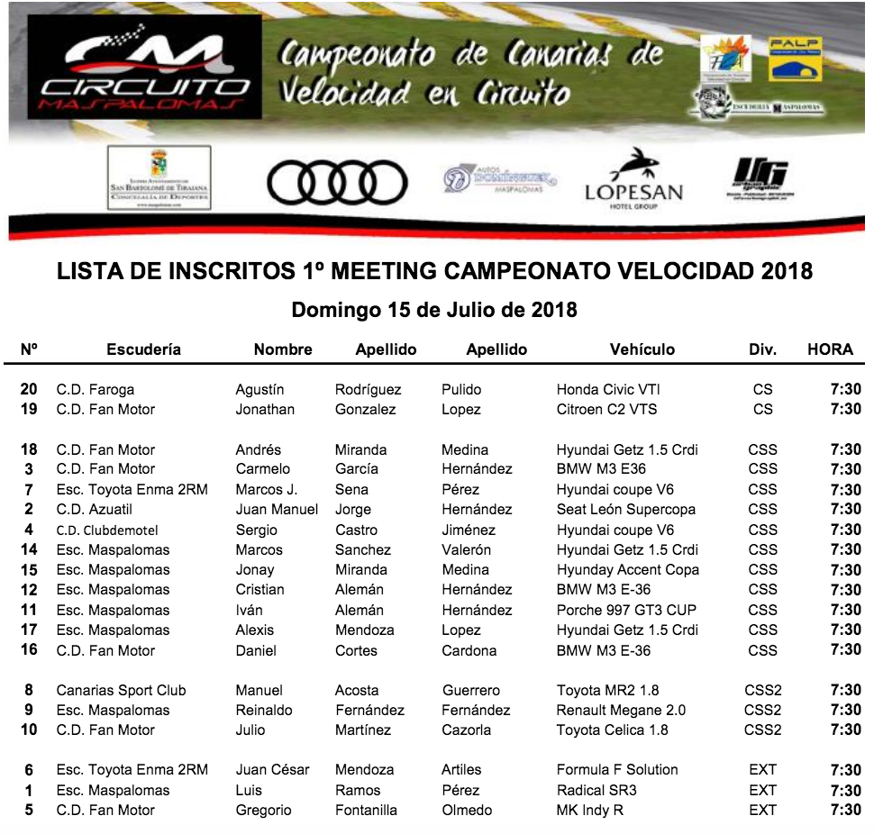 Este domingo 15 de julio se disputa la primera jornada de carreras de la presente temporada 2018, perteneciente al Campeonato de Canarias de Velocidad en Circuito.