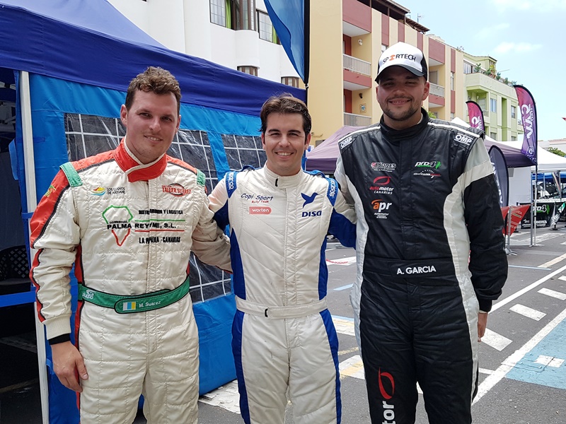 Terceros fueron Adrián García y Raquel Ruiz, que en el debut en Canarias del Peugeot 208 T16 R5 ex Loeb poco pudieron hacer en tramos donde la velocidad punta favorecía a las monturas germanas. Buenas prestaciones las mostradas por ambos, acabando en su puesto natural, a 3:03.9 de la cabeza, a 1.43.6 del segundo puesto y superando a los locales Samuel Rodríguez y Carlos Alberto Pais (Mitsubishi Lancer Evo VI), cuartos, en 1:43.9, ya que poco más pudieron hacer en su regreso a la competición dos años después.
