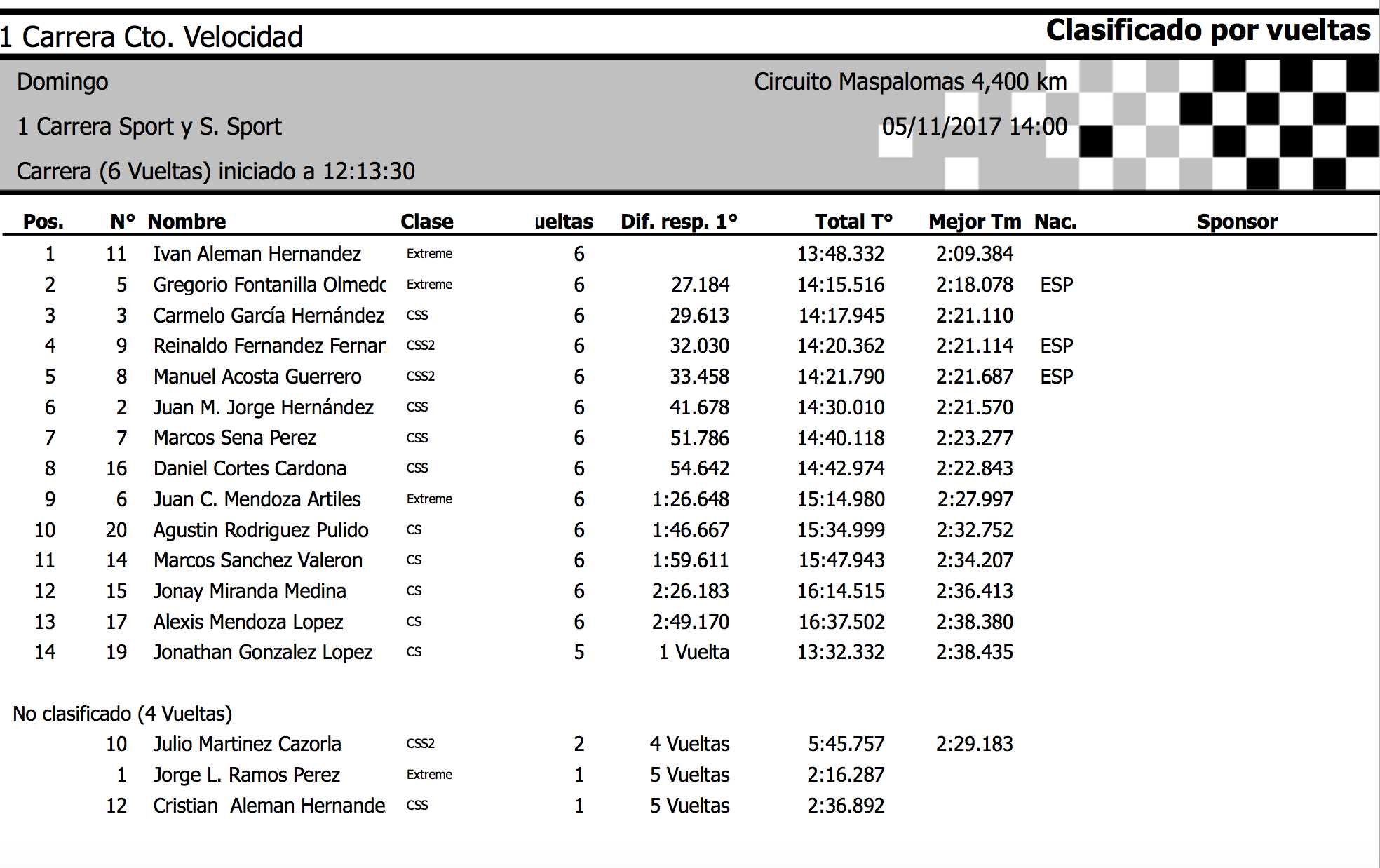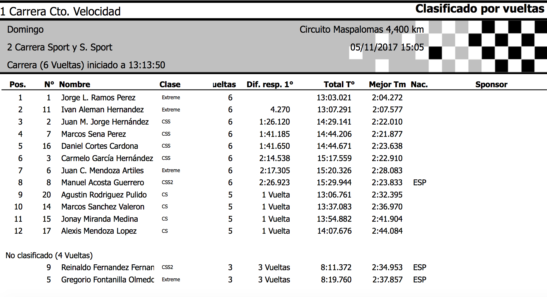 Luis Ramos (Radical SR3) tenía problemas en la primera carrera, no pudiéndola finalizar, pero en la segunda, con todo en orden, logró superar a Iván para llevarse el triunfo con una renta de 4.270. Alemán sale como el primer líder del certamen.