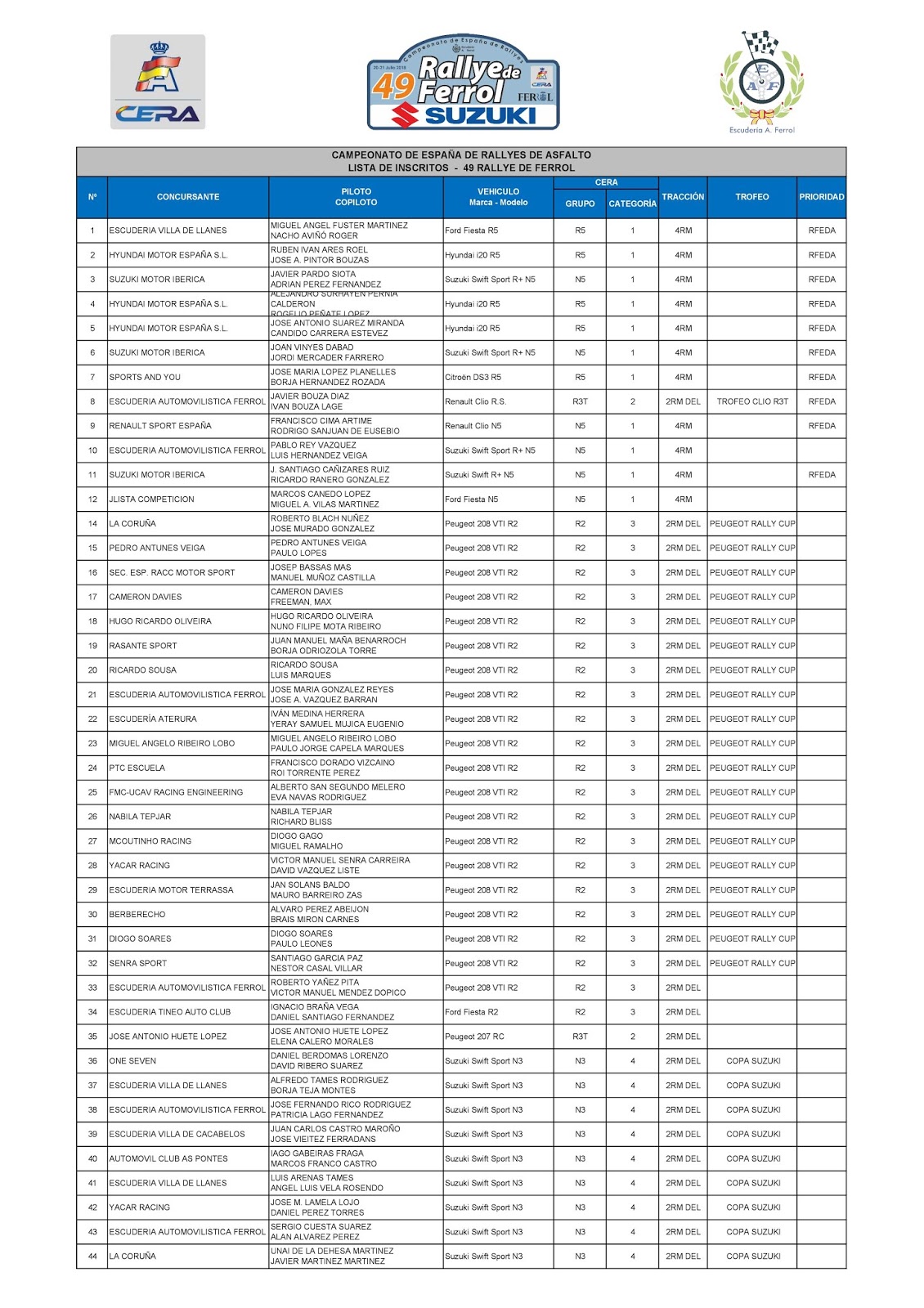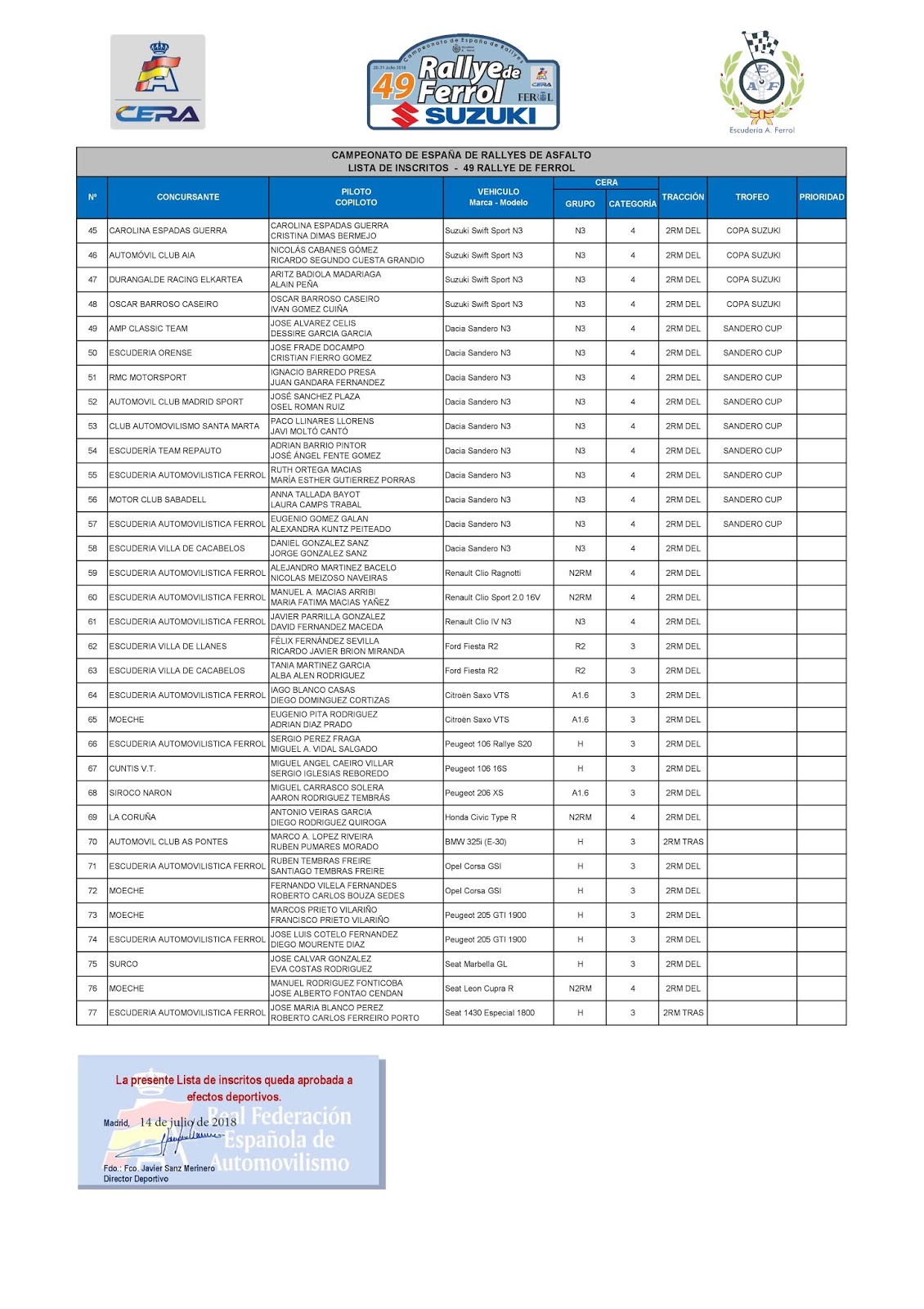 El 49 Rally de Ferrol, cita del Campeonato de España de Rallys de Asfalto 2018 y que se disputará entre este viernes y sábado, presentó una lista de inscritos donde participarán un total de 76 equipos.