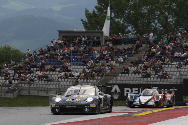 La tercera cita de las European Le Mans Series (ELMS), las 4 Horas del Red Bull Ring, estuvo repleta de dramas, con estrategias de paradas en boxes jugando un papel clave en el resultado general, y con los equipos de Dunlop en el primer y tercer puesto del podio. G-Drive Racing ganó la carrera con el número #26. JMW Motorsport se retiró del liderato de la carrera por un problema mecánico y concedió la victoria de la clase LMGTE en la clasificación al equipo Proton Competition #88.