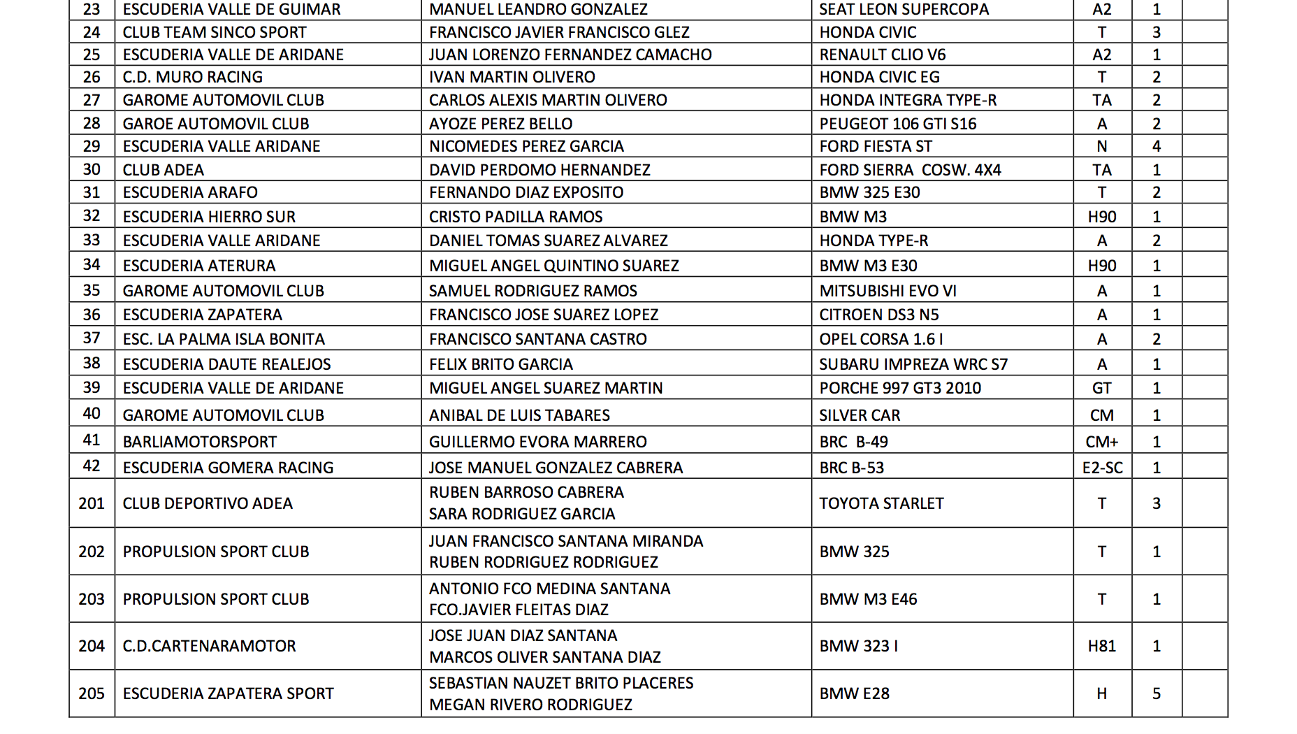A priori, estos cinco equipos deberían pujar por las posiciones de podio de la 41ª edición de la Subida a Barlovento, pero no van a estar solos. Habrá que seguir de cerca las prestaciones de Iván Martín (Honda Civic), Carlos Martín (Honda Integra Type R), Juan Lorenzo Fernández (Renault Clio V6), Juan Ignacio Pérez (Ford Sierra), Ayoze Pérez (Peugeot 106 S16), Jorge Rodríguez (Mitsubishi Lancer Evo VIII), Manuel Leandro (SEAT León Supercopa), Artemio Ramos (SEAT León Supercopa) y David Perdomo (Ford Sierra), entre otros. Los aficionados esperarán también el paso de Miguel Quintino, uno de los reclamos con su espectacular BMW M3, una máquina como la de Cristo Padilla que a buen seguro ofrecerá un generoso espectáculo.
