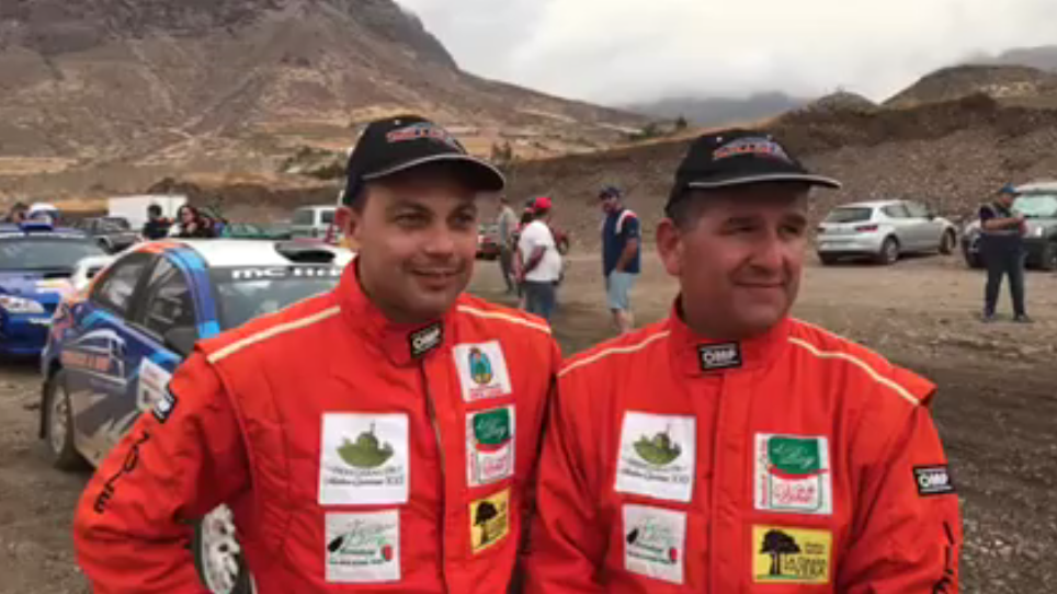 Juan Carlos Quintana y Yeray Mujica (Mitsubishi Lancer Evo X) se mostraron muy satisfechos tras ganar el Slalom de La Aldea.