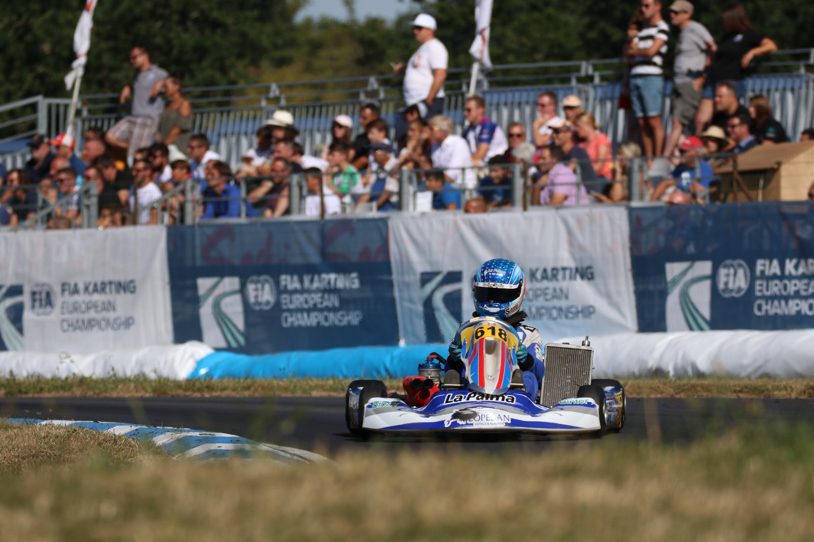 Buen trabajo de Santi Concepción Jr. en el Campeonato de Europa de Karting. Su debut en una prueba de este tipo siguió los deseos del equipo, que no eran otros que tratar de estar el mayor tiempo posible en la pista. El piloto natural de La Palma se ajustó al guión y poco a poco fue mejorando sus prestaciones sobre el asfalto, a la vez que adaptaba su estilo de pilotaje a lo que requería esta combinación de chasis y nuevo motor OK para él.