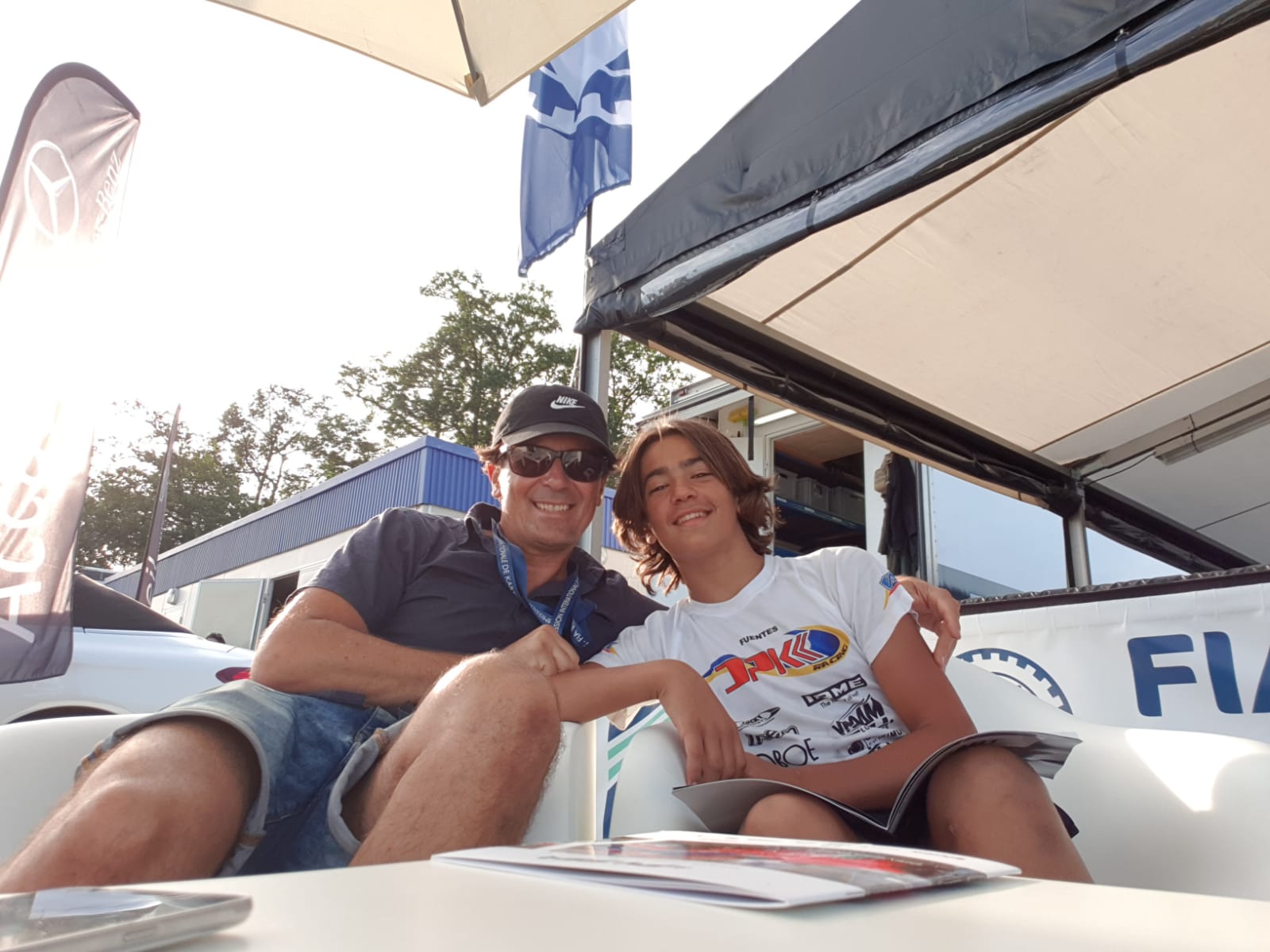 Después de reconocer a pie el trazado próximo a un lugar emblemático como Le Mans, el miércoles tomaba contacto con la pista. “Ahí empecé a tratar de adaptar mi estilo a esta combinación de chasis FA con motor OK”, sobre todo teniendo en cuenta la goma que iba a ir quedando en la pista. El jueves, “con detallitos” como Santi Jr. puntualiza, mejoraba su tiempo después de corregir aspectos principales como la frenada. Esa lectura pormenorizada daba buenos resultados en las sesiones del viernes. “Iba a más y nuestro tiempo ya era ocho décimas mejor, estábamos a menos de un segundo del ritmo de la pole”, recordaba el piloto canario. Ese día gripaba el motor de la carrera y lo hacía a 90 km/h, afortunadamente sin consecuencias para piloto y kart, “pero quizá después de la reparación ya no rindió como antes”. Allí, junto al puesto de control esperando a que acabase la sesión, observaba a sus compañeros, “eso me ayudó a pulir detalles importantes”.