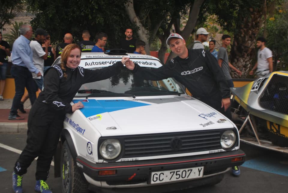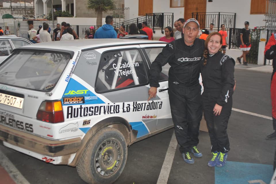 La pareja grancanaria formada por Cristian Calderín y Verónica Tejera llevaron su Volkswagen Golf GTI a la tercera posición del Slalom de La Aldea, justo por delante de otras monturas mucho más potentes que la suya. Un resultado simplemente espectacular.