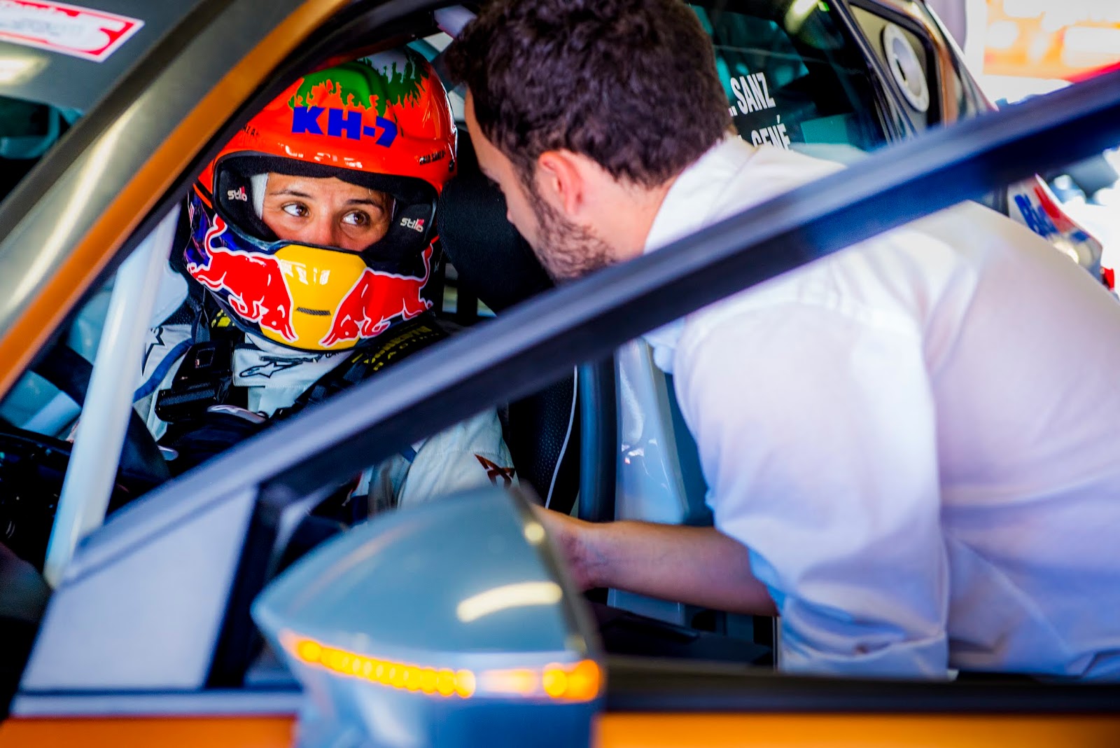 – Sensaciones sobre la pista: De 0 a 100 Km/h en 5, 2 segundos. Así empieza la piloto su entreno sobre la pista al volante del CUPRA TCR. “Es un vehículo ágil y divertido de conducir y, al mismo tiempo, trasmite mucha sensación de seguridad. La frenada es buenísima”, comenta mientras empieza a adaptarse al que será su nuevo aliado de cuatro ruedas.