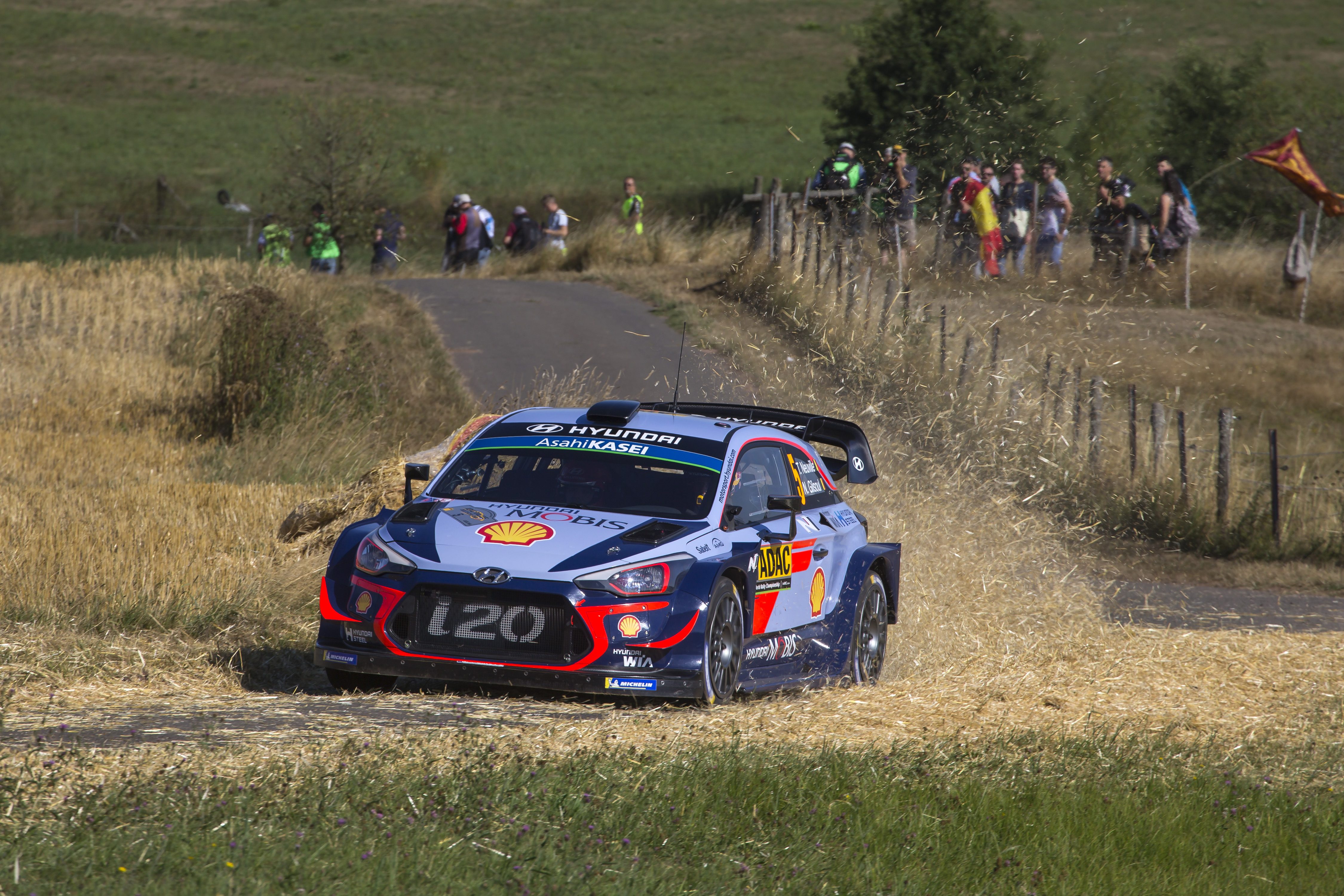 Hyundai Motorsport ha obtenido su noveno podio en el Campeonato del Mundo de Rallies 2018 (WRC) en un dramático día final en Alemania, la novena ronda de la temporada.