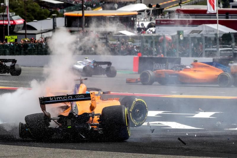 El error en la frenada del piloto alemán provocó el abandono de Alonso, del monegasco Charles Leclerc (Sauber), el finlandés Kimi Raikkonen (Ferrari) y el australiano Daniel Ricciardo (Red Bull) en un inicio en el que frenó demasiado tarde en la primera curva y golpeó fuertemente por detrás al monoplaza del piloto español.