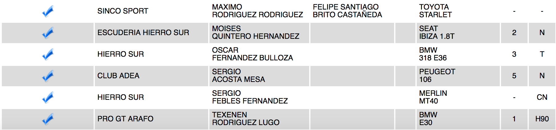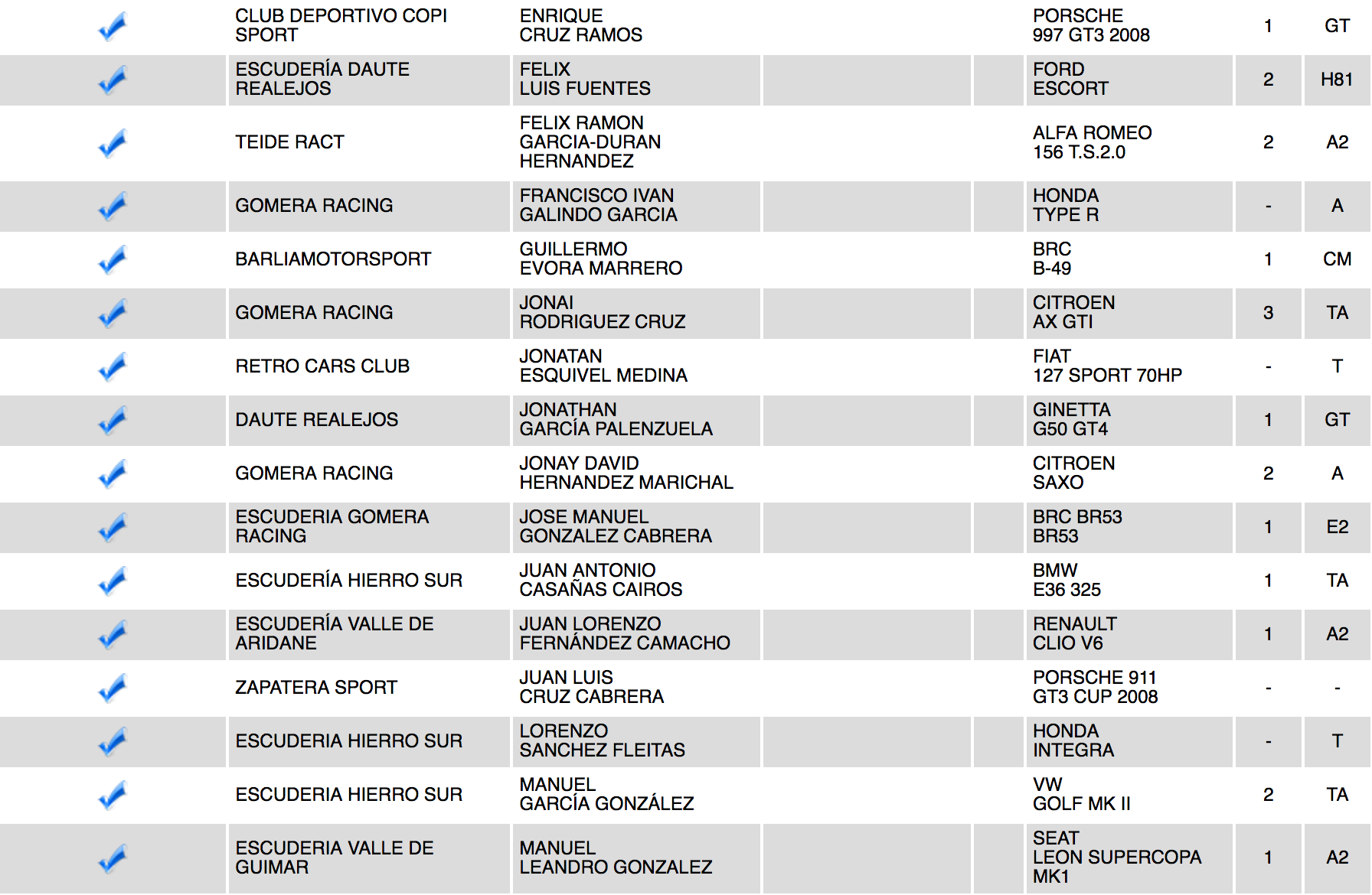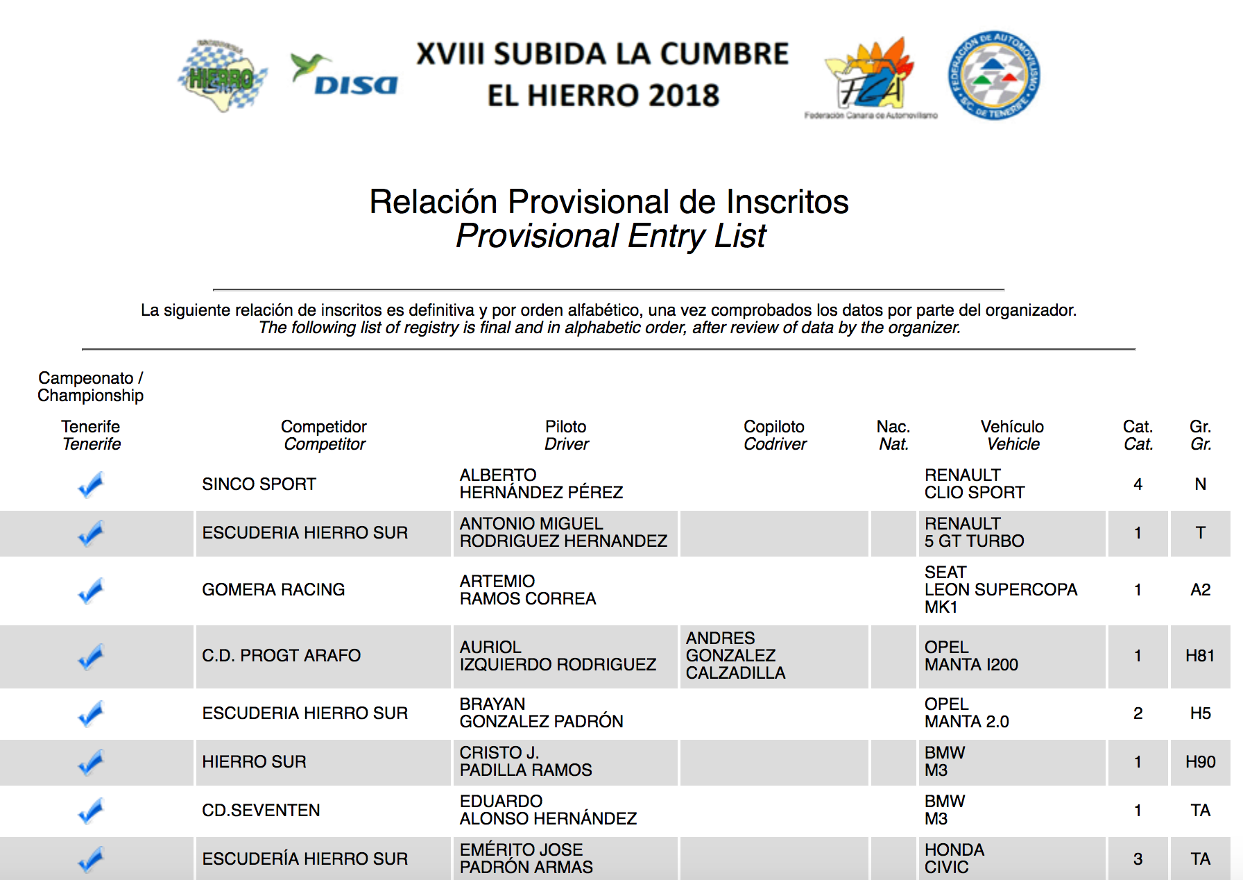 La Escudería Hierro Sur ha publicado la relación de equipos inscritos en la XVIII Subida La Cumbre, cita del Campeonato Regional de Canarias de Montaña, donde está el tinerfeño Enrique Cruz pero no el grancanario Luis Monzón.