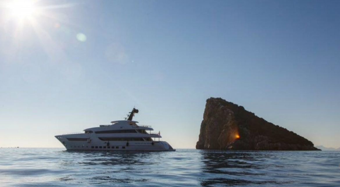 El barco, construido a medida, tiene capacidad para 12 personas y cuenta con piscina, jacuzzi, aire acondicionado y Wifi, e incluso un piano.