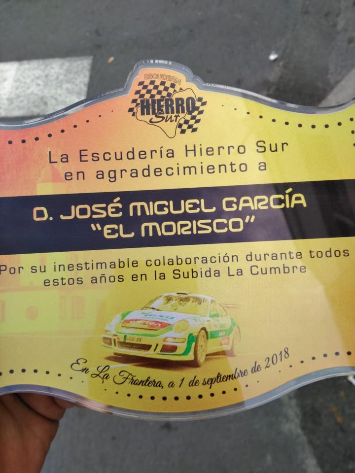 Quiero agradecer, como siempre, a mi equipo por mantener el coche perfecto para yo subirme y correr; a la Escudería Hierro Sur, que se han desvivido con nosotros y han tenido un detalle muy emotivo para mí; a Bazar Padrón por su amabilidad y a toda la afición herreña, que también nos han apoyado en cada curva.