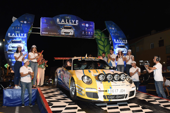 Los del Porsche 997 GT3 2010 ganaron los dos primeros tramos de esta cuarta prueba del Campeonato de Canarias y han acabado el día con 20,3 segundos de ventaja sobre el Peugeot 208 T16 R5 de Adrián García-Raquel Ruiz. Unos sorprendentes Jorge Rodríguez-Javier Pérez, con Mitsubishi Lancer Evo VIII, ocupan la tercera plaza. Carlos David García-Jordi Díaz lideran la Copa Adam DISAmax.
